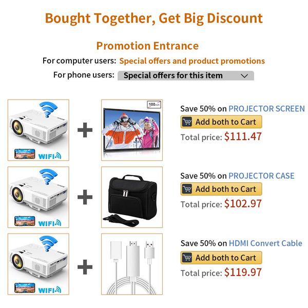 WiFi Mini Projector, 2019 Newest 1080P Supported, 2600 Lumens HD Video Projector with 176'' Projector Size, 50000 Hours Lamp Lifetime, Compatible with TV Stick, HDMI, USB for Home Theater, Movie and M