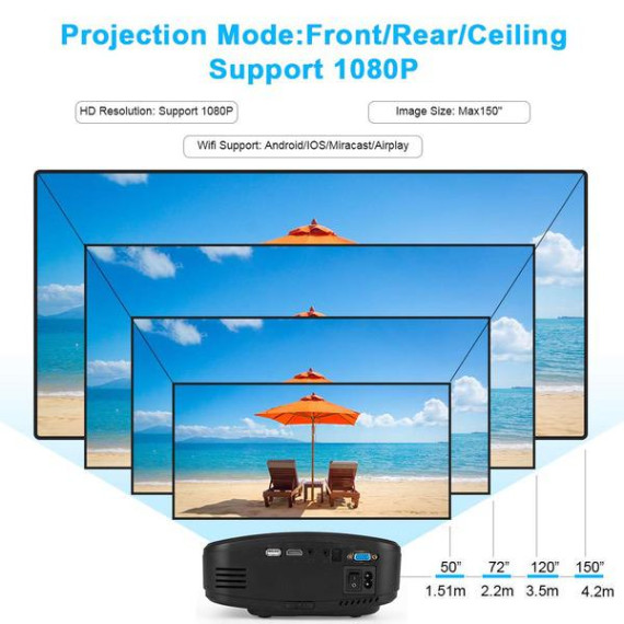 WiFi Projector, iBosi Cheng Portable Mini LCD Video Projector Full HD 1080P LED Home Theater Projector with HDMI/ USB/ VGA/ AV Input for Smartphones PC Laptop Gaming Devices