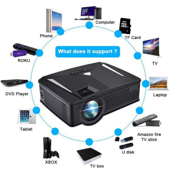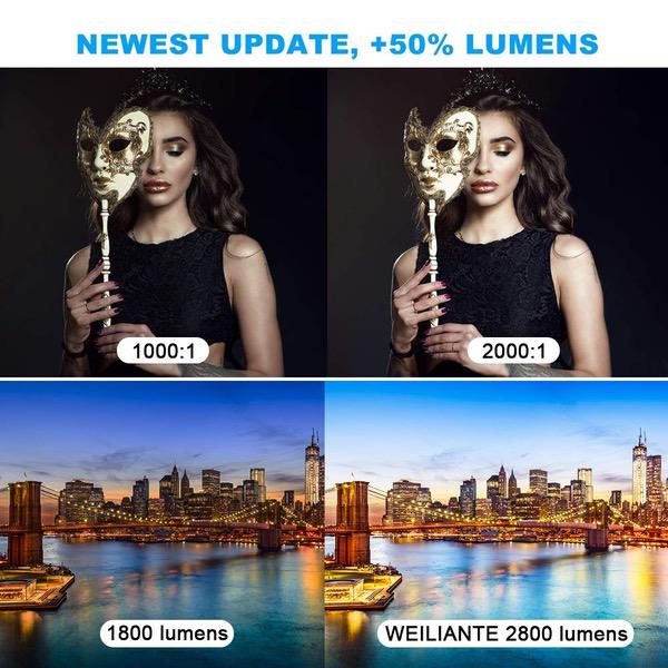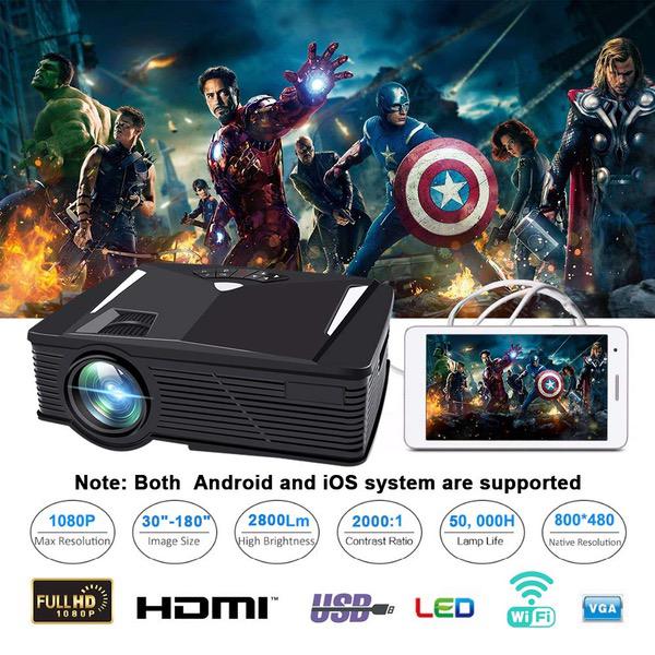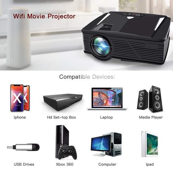 Wireless Projector 2800 Lumen, WEILIANTE WiFi LCD Mini Movie Projector for Home Outdoors, WiFi Directly Connect with Smartphones, 50000 Hours Lamp Life, Support Full HD, HDMI,VGA,AV,2xUSB,SD