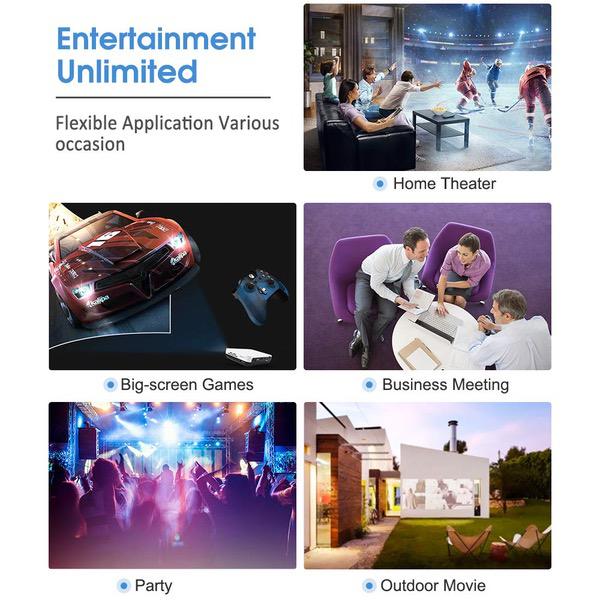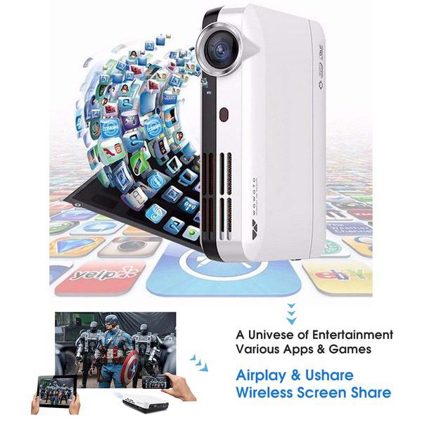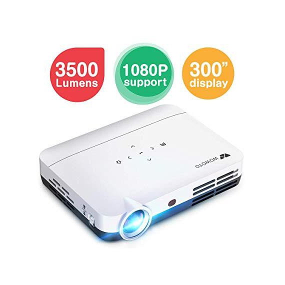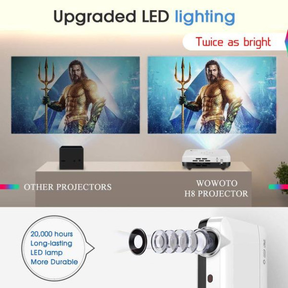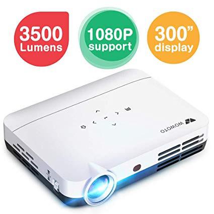 WOWOTO H8 3500 lumens Mini Projector White LED DLP 1280x800 Real Mini Home Theater Projector WXGA Support 3D 1080P HD Android HDMI USBx2 RJ45 176”± Perfect for Entertainment Business Wireless Screen