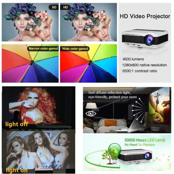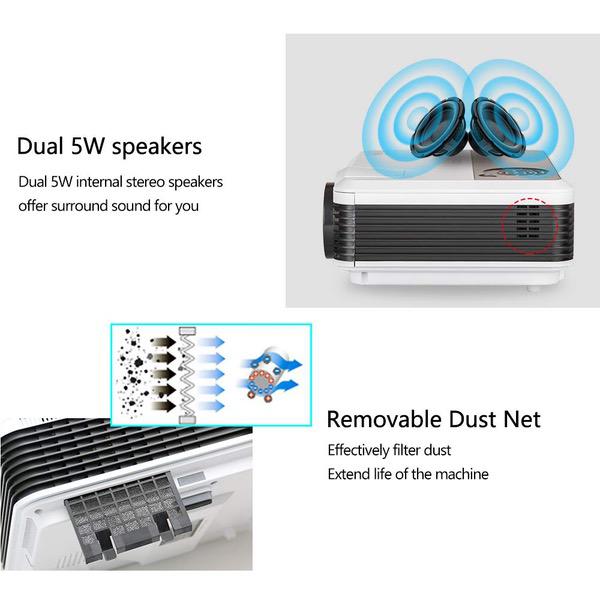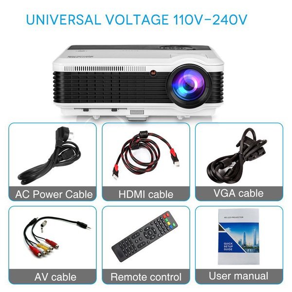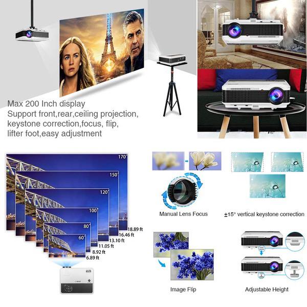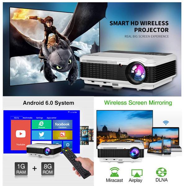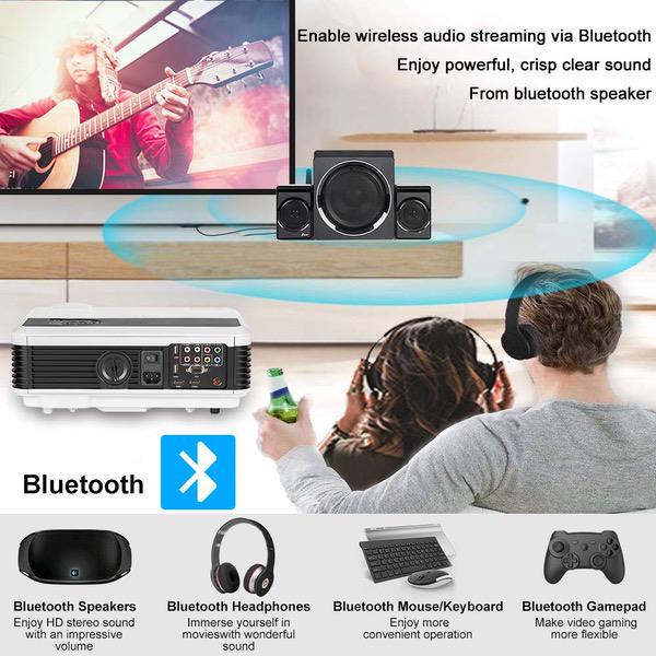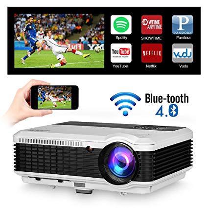 WXGA HD Wifi LED Home Cinema Theater Outdoor Movie Projector with HDMI USB Input Bluetooth LCD Smart Android Wireless Video Projector 1080P 720P for Laptop DVD TV XBOX Smartphone Slides Photo Game
