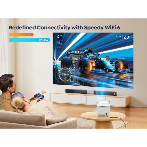 The Yaber V12 is a feature-rich home cinema projector designed to provide an immersive viewing experience with its advanced display technology and smart functionalities.The V12 offers a native 1080p Full HD resolution, ensuring sharp and detailed images. With a brightness of 400 ISO lumens, it delivers clear visuals suitable for various lighting conditions. The projector supports a projection size of up to 300 inches, allowing for a cinematic experience in the comfort of your home.Powered by a Linux-based operating system, the V12 provides instant access to popular streaming apps like Netflix, YouTube, and Prime Video, eliminating the need for external devices.Equipped with 20W Hi-Fi stereo speakers and Dolby Audio support, the V12 delivers rich and immersive sound, enhancing the overall viewing experience.The V12 boasts a dust-proof enclosed optical engine, achieving 99% effectiveness in preventing black spots on the screen, thereby enhancing durability and maintaining image quality over time.Yaber V12 combines high-quality visuals, robust audio, and smart features in a portable design, making it a compelling choice for home entertainment enthusiasts seeking a versatile and user-friendly projector.