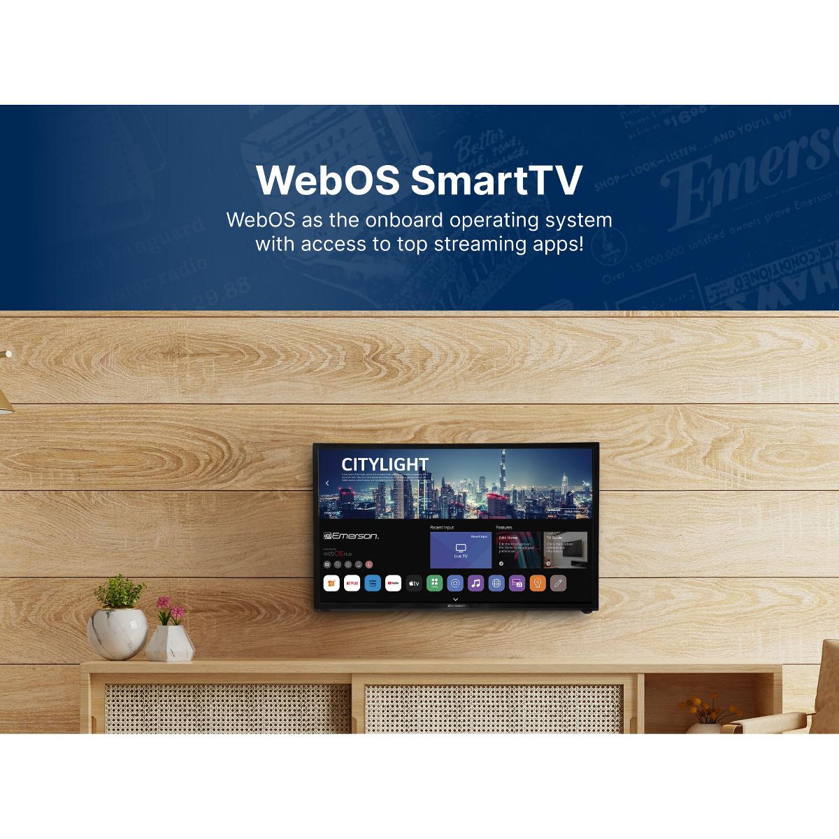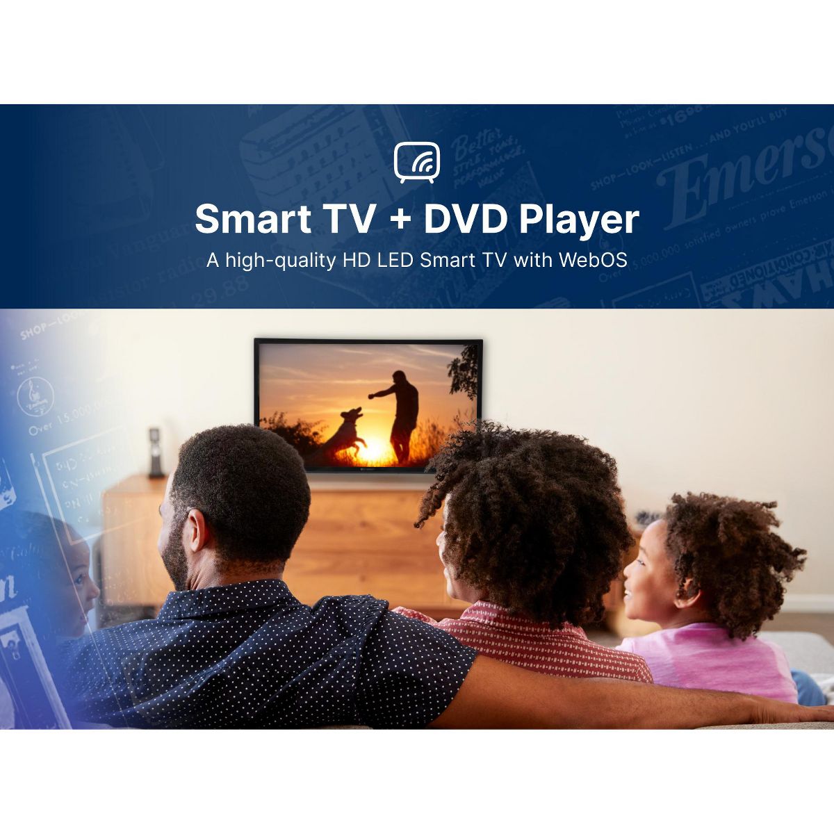 Experience the feature-rich Emerson™ 24” Class Smart HD LED TV with a built-in DVD player. The TV features an HD LED panel with a full view angle and comes equipped with webOS system and Bluetooth® wireless technology for you to seamlessly stream popular apps. A user-friendly interface and Magic Remote Control allow you to navigate quickly. Upgrade your home entertainment with the Emerson™ LED Smart TV and redefine your viewing experience.