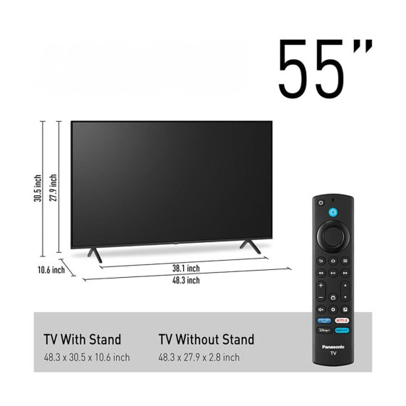 Panasonic W95 Series (2024) Mini LED 4K Ultra HD Smart Fire TV | Quick Start Guide | Owner’s Manual | Power Cable | Stand Legs | TV Remote