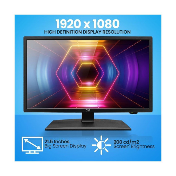 The Pyle 21.5'' ELED RV Digital TV is a versatile entertainment solution perfect for RVs, campers, and mobile setups. This Full HD 1080p flat screen TV features a built-in DVD player, allowing you to enjoy your favorite movies on the go. With multiple input options, including HDMI, VGA, RCA, and composite, you can easily connect various devices for a customized viewing experience. The TV is also compatible with both Mac and PC, making it ideal for a wide range of uses. Whether mounted on the wall or using the included stand, this TV offers crisp visuals, clear sound, and flexible functionality, making it a must-have for any road trip or outdoor adventure.