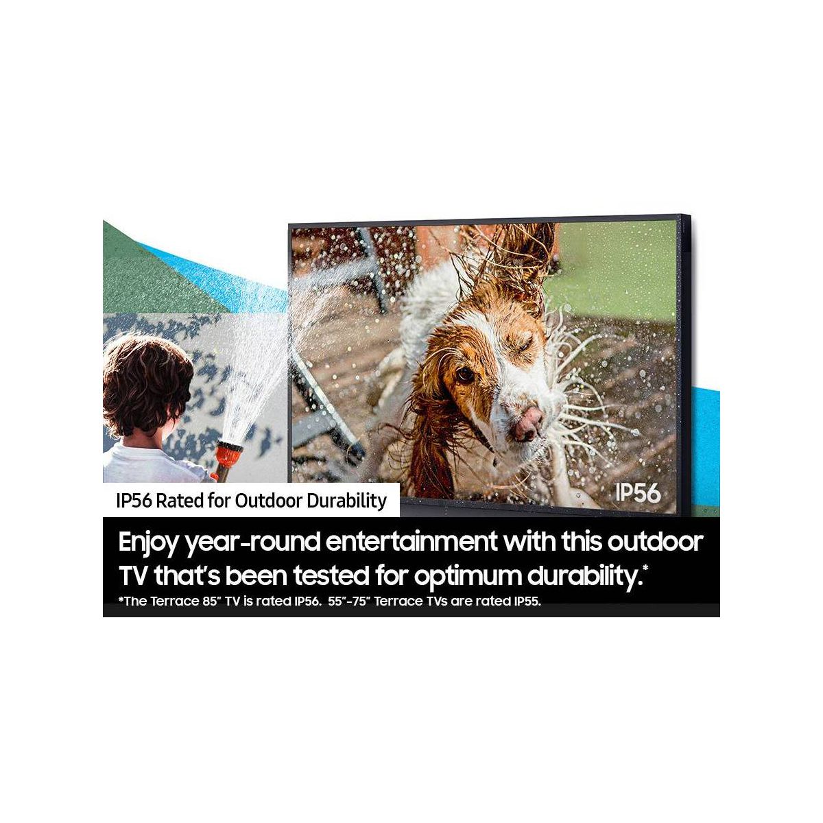 Forget curb appeal. With The Terrace, it’s all about the backyard. The 85” brings brightness and picture quality to your pool parties and game day group hangs. Impress your neighbors with our largest outdoor TV that has our highest IP rating for durability* and protection against water and dust so your oasis stays looking awesome all year long. *IP56 rated for dust and water.