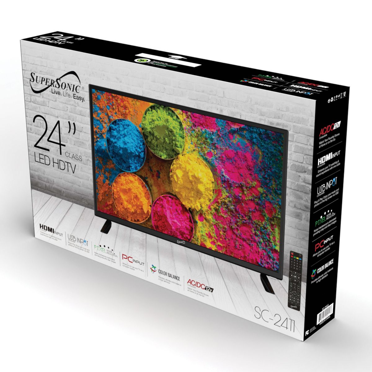 Enjoy stunning picture quality and feel like you're right in the middle of the action with this Supersonic 24 In. LED TV. The HD-quality picture and 178° viewing angles will assure that you get the best show possible. Plus, it is wall mountable for a sleek and convenient installation.