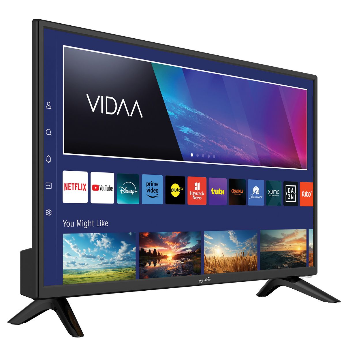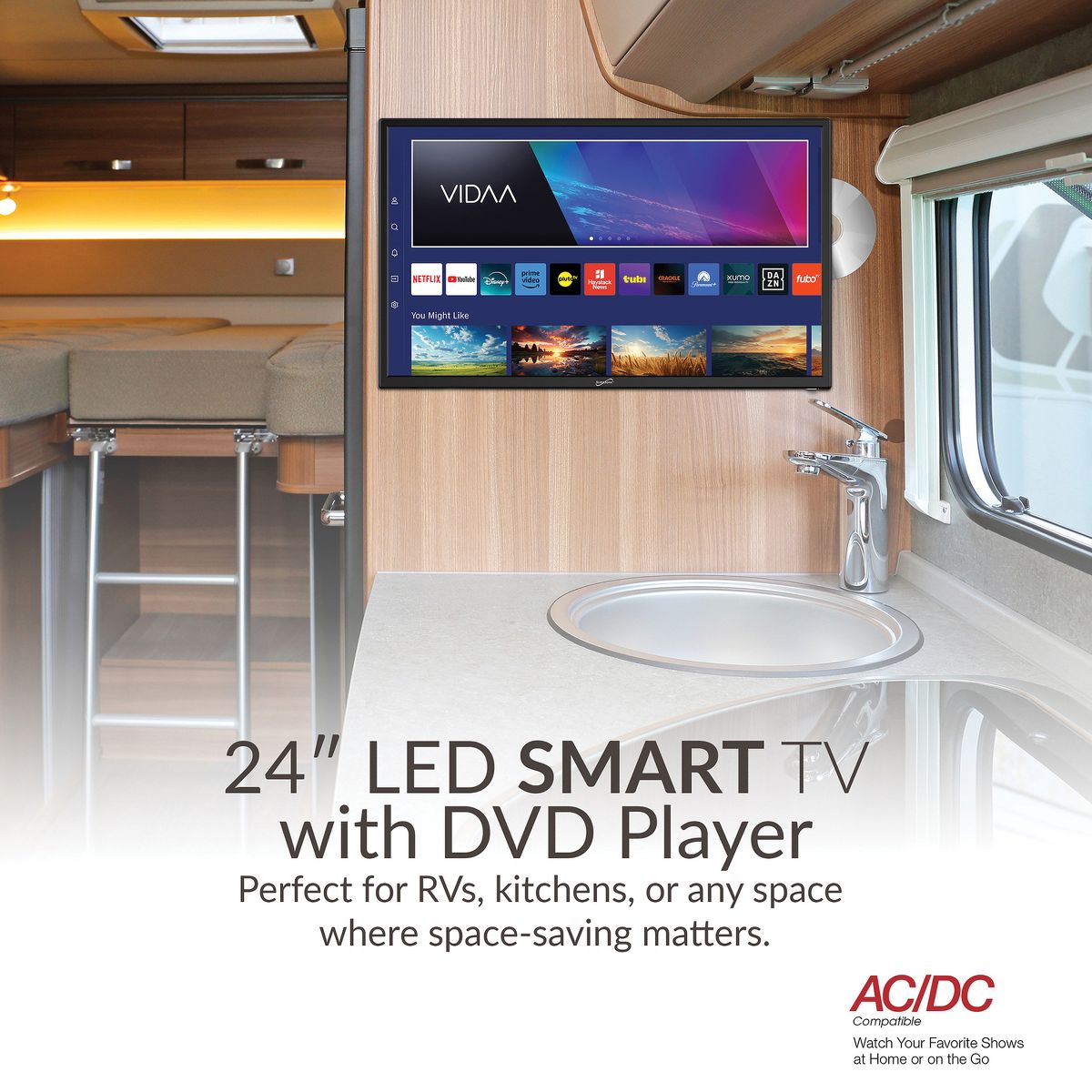 The Supersonic® SC-2426SDVD 24-In. LED Smart HDTV is your all-in-one entertainment solution. Immerse yourself in stunning visuals and crisp audio with this feature-packed television. With a built-in DVD player compatible with various formats, including DVD, CD, and more, enjoy your favorite movies and shows hassle-free. The SC-2426SDVD offers versatile connectivity options with 3 HDMI® ARC ports, built-in Wi-Fi®, and USB input, allowing you to stream content, play music, and view photos with ease. Experience superior picture quality with HDTV resolution of 1366 x 768 and a contrast ratio of 3,000:1, while the wide viewing angle ensures everyone in the room has the best seat in the house. Customize your viewing experience with various picture modes and sound modes, including Vivid, Standard, Theater, Music, and more. With energy-saving features, a sleep timer function, and multi-language on-screen display, the SC-2426SDVD offers convenience and flexibility. Complete with built-in speakers, a full-function remote control, and AC/DC compatibility, this television is ideal for any environment, whether at home or on the go. Elevate your entertainment experience and enjoy endless hours of immersive viewing pleasure.