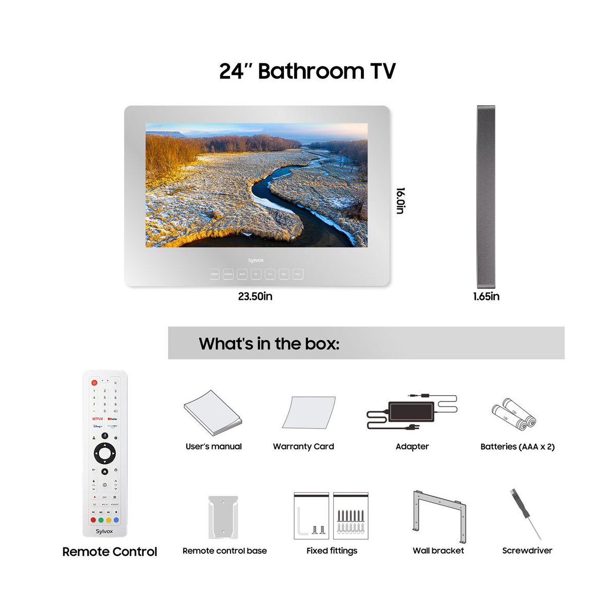 SYLVOX 24" Smart Mirror TV for Bathroom, 1080P Newest Google TV Support Google Assistant, IP65 Waterproof TV for Bathroom Shower & SPA (Wall Mount)