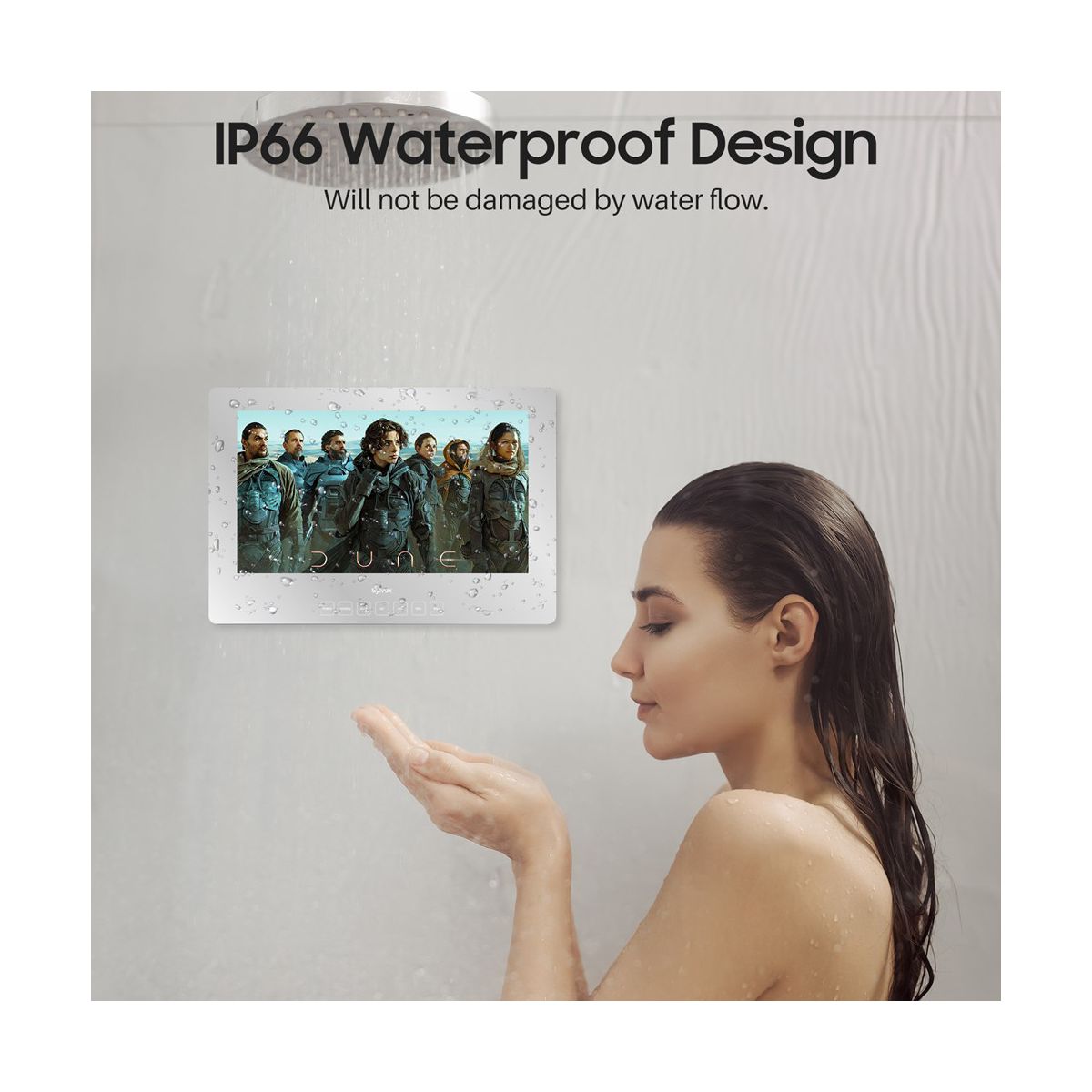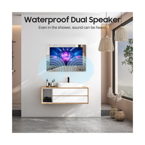 SYLVOX 24" Smart Mirror Bathroom TV features Google TV system, bringing voice control and smart home integration right to your bathroom. With 1080P HD resolution, IP65 waterproof design, and 500nit brightness, it's perfect for clear, crisp viewing even in steamy showers. Enjoy seamless WiFi & Bluetooth connectivity and touch button controls for a smart, functional upgrade.