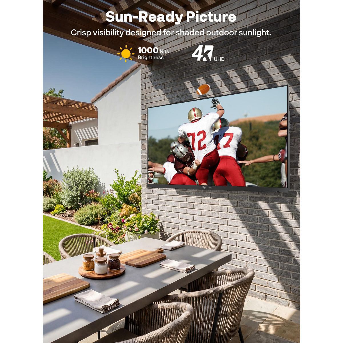 Enjoy crisp 4K detail and daylight-ready brightness that keeps movies, sports, and family shows vivid and comfortable to watch outdoors—from slow afternoons under the pergola to weekend gatherings on the patio.