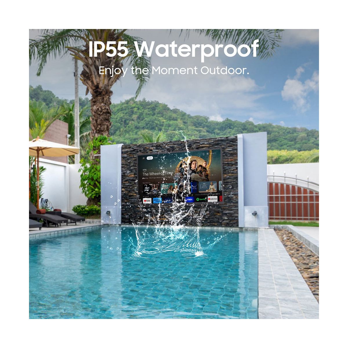 The Sylvox Pool Pro 2.0 series outdoor TV is designed for outdoor use with 2000 nits brightness, IP55 waterproof rating, and an operating range from -22℉ to 122℉. Enjoy a smart Google TV experience with over 10,000 apps, Google Voice Assistant, and built-in Chromecast. It offers stunning 4K UHD picture quality and Dolby Atmos sound for a cinematic experience. Perfect for enhancing outdoor living and suitable for commercial use, this TV delivers exceptional performance in any outdoor setting.