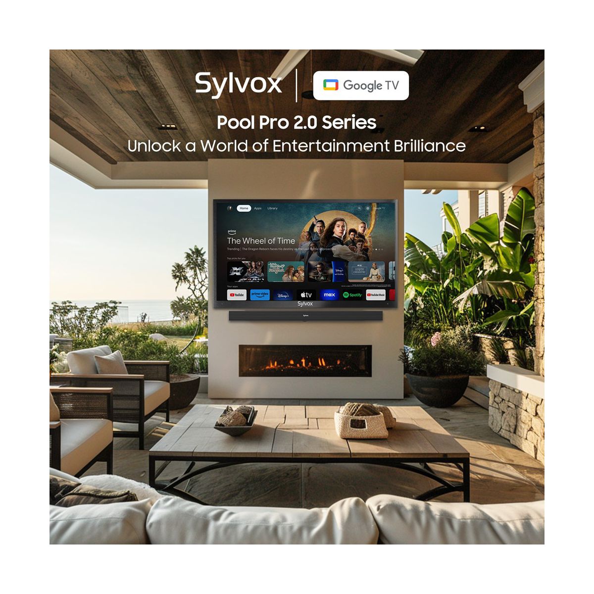 The Sylvox Pool Pro 2.0 series outdoor TV is designed for outdoor use with 2000 nits brightness, IP55 waterproof rating, and an operating range from -22℉ to 122℉. Enjoy a smart Google TV experience with over 10,000 apps, Google Voice Assistant, and built-in Chromecast. It offers stunning 4K UHD picture quality and Dolby Atmos sound for a cinematic experience. Perfect for enhancing outdoor living and suitable for commercial use, this TV delivers exceptional performance in any outdoor setting.