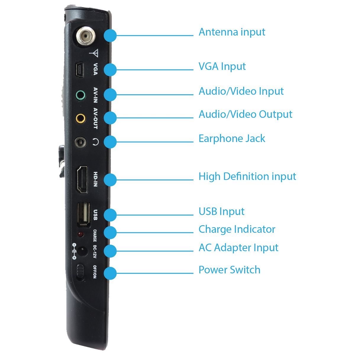 Visibility and Practicality: You can be sure that your new portable television will give you the best viewing angle possible with the hard mounted, sturdy adjustable back stand complete with an anti-slip textured panel. With a 12-inch LED Widescreen and 1280 x 800 Resolution you can be sure the picture will be as bright as your memories of all the adventures you can have with this wonderful portable TV.