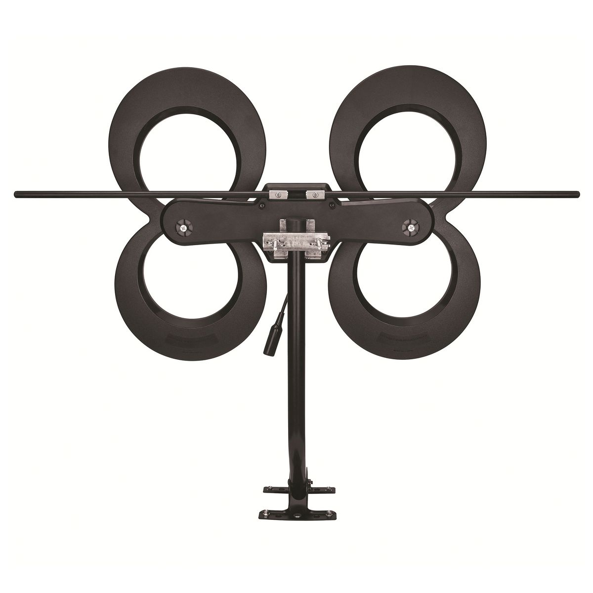 The Antennas Direct® ClearStream 4MAX® HDTV Antenna uses 4 patented loops to receive TV signals more than 70 miles away from broadcast towers. The MAX family of antennas offers the strongest performance in the most compact designs. With quick-connect parts, assembly only takes a few minutes. The included 20-in. mast has a pivoting base for installation on vertical or horizontal surfaces. It's ideal for suburban and rural areas where heavy foliage or roofing materials between your antenna and the TV towers can interfere with reception. Dedicated UHF and Hi-VHF multi-directional elements offer reliable reception from the front and back of the antenna for more TV channels even if your broadcast towers are spread out. If you had cable or satellite installed before, the coaxial cable needed to distribute signal throughout your home may already be installed – simply connect the ClearStream 4MAX to the existing coaxial cable and you’ve got free local TV in crystal-clear HD straight from the networks. Find your TV channels and towers on Antennas Direct's website or using the free Antenna Point app on android or iOS devices. Coaxial cable sold separately. The antenna comes with a lifetime manufacturer warranty._