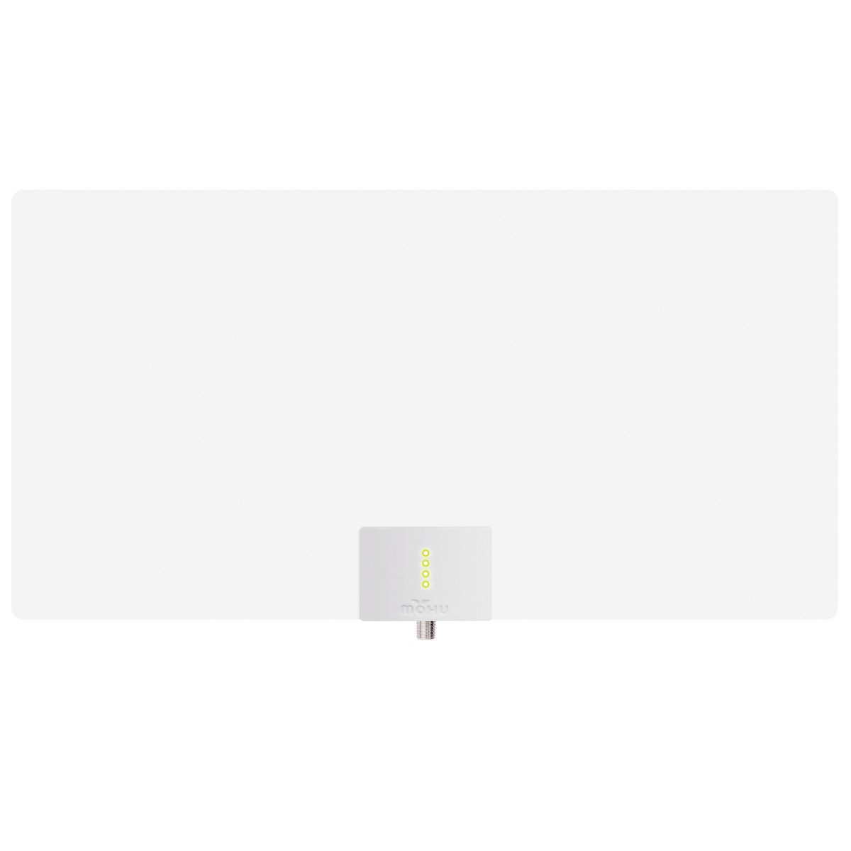 The Mohu Leaf® Supreme PRO indoor HDTV antenna has a 65-mile range, making it one of the most powerful amplified indoor antennas available. The largest of the Leaf® family, this model combines the strong signal reception of an outdoor antenna with the elegant simplicity of our trend-setting flat indoor antennas. Amplification is located right at the base of the antenna where signal is at its best for less pixelation and enhanced reception. Adjust placement of the antenna in real-time with the integrated signal indicator - LED lights illuminate where TV signals are the strongest to find the optimal location for reception. Engineered using technology developed in the USA, multi-directional UHF and Hi-VHF elements receive TV signals from both sides so you can show either side of the black or white reversible design or paint the Leaf® Supreme Pro for a customized aesthetic. Connect USB power injector directly to your TV’s USB port. This modern digital TV antenna installs in minutes to easily enjoy free over-the-air broadcast TV in your area with the clearest picture quality possible. Receive OTA DTV broadcasts in Full HD 1080p, 4K 8K UHD, NEXTGEN TV depending on your coverage area. Visit our website to find free TV towers and channels._