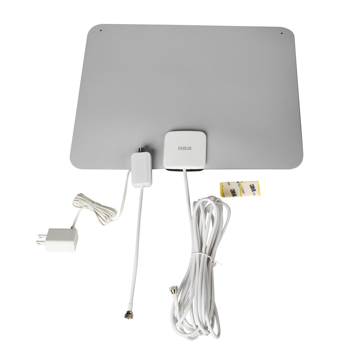 RCA Amplified Indoor Flat HDTV Multi-Directional Antenna up to 65-Mile Range, Black/White