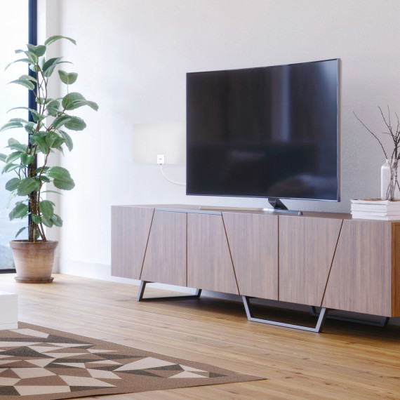 Enjoy HDTV network programming and your favorite shows for free, with no monthly fees, subscriptions, or contracts. This Ultra-Thin Flat Antenna from RCA features a super-thin, sleek design that blends seamlessly into any home interior. Its patented 360° multi-directional design eliminates the need for constant adjustments, ensuring optimal reception from any direction. With a flat profile design and no hidden rabbit ears, it offers a modern, clutter-free look. Advanced dual-stage amplification boosts weak signals, delivering crystal clear channels. NextGenTV™ (ATSC 3.0) compatibility ensures stunning 4K Ultra HD picture quality and immersive movie theater-quality sound. The antenna includes a detachable 16-ft. coax cable and is a great complement to streaming players. It also serves as a dependable backup television source when storms knock out cable or satellite service._