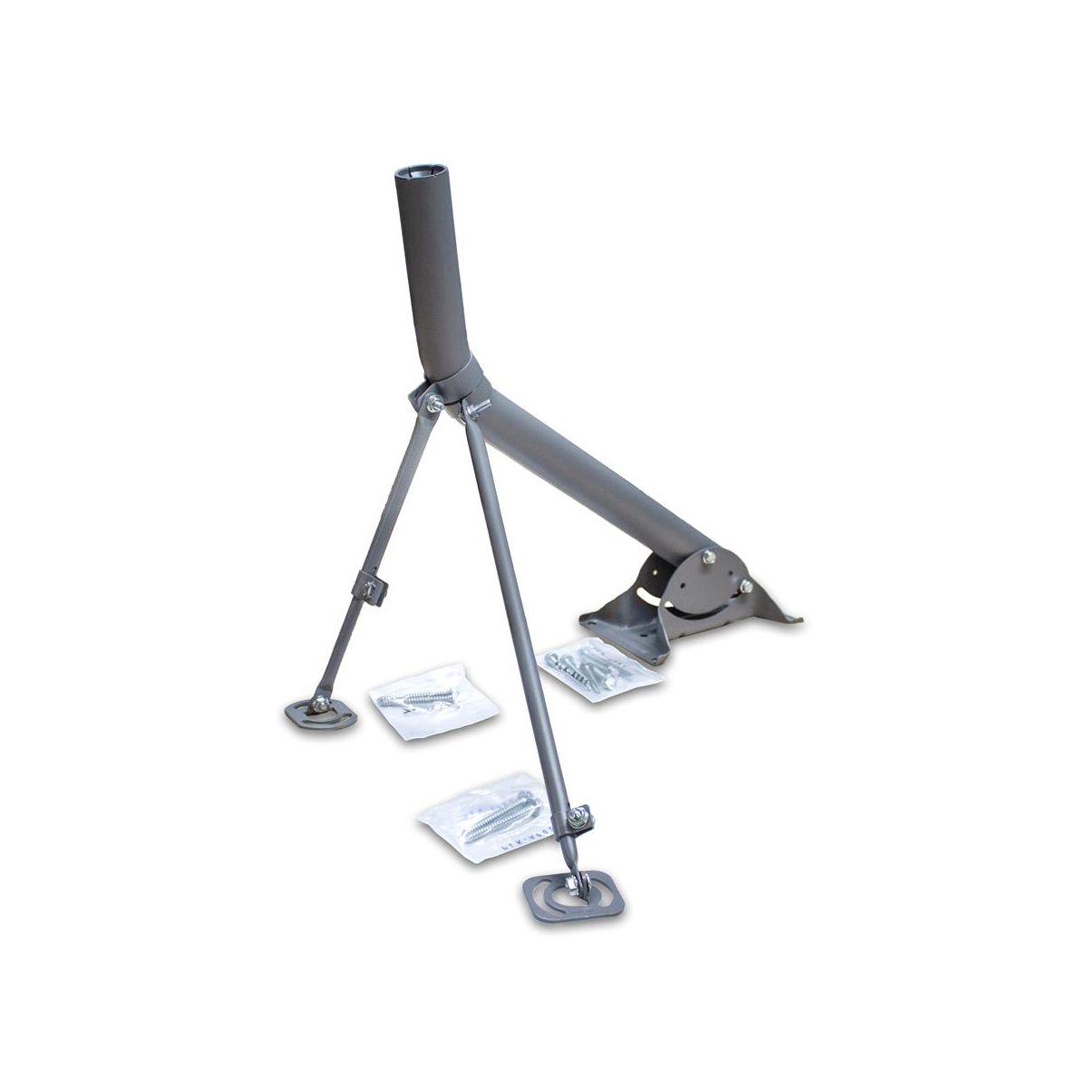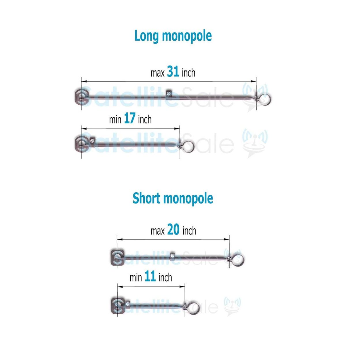 Brand new SatelliteSale Universal J Pipe Antenna Mount 2″ Outdoor With Monopoles is commonly used for wall and roof installation. It comes with 2 various telescopic adjustable monopoles to provide even greater support. The shorter monopole length is a minimum of 11 inches and 20 inches maximum. The longer one is min. 17 inches and max 31 inches long. Unlike other J pipe antenna masts sold as alternatives, our heavy-duty roof antenna mount weighs 8 pounds, supporting even the heaviest satellite dishes and antennas up to 30 pounds. At the same time, rubber pitch pads and powder-coated surface are provided for long-lasting and weatherproof performance. They function as caulking when placed in between the mast and the mounting base, and prevent moisture penetration. Built-in bubble level ensures proper alignment. All necessary mounting screws are also included. Our Universal Antenna Mast is a great choice for DirecTV satellite dishes and other antennas such as OTA, off-air antennas, weather station antennas, radio station antennas, wireless signal boosters. Furthermore, we assure the lifetime service of each SatelliteSale Universal J Pipe Antenna Mast to deliver a positive experience to our clients. What is in the box: