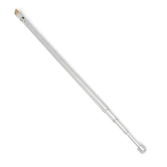 This telescopic universal antenna is designed for FM radio and TV antennas. It features 4 retractable sections, allowing you to adjust the length for optimal reception. Made from stainless steel, it ensures stability and long life. Ideal for use in television, radio, remote controls, and more, this antenna serves as a great replacement for damaged antennas. The package includes one telescopic antenna, with an unstretched size of 21cm and a full length of 63cm. The antenna fits M3 thread specifications and comes in a silver tone.