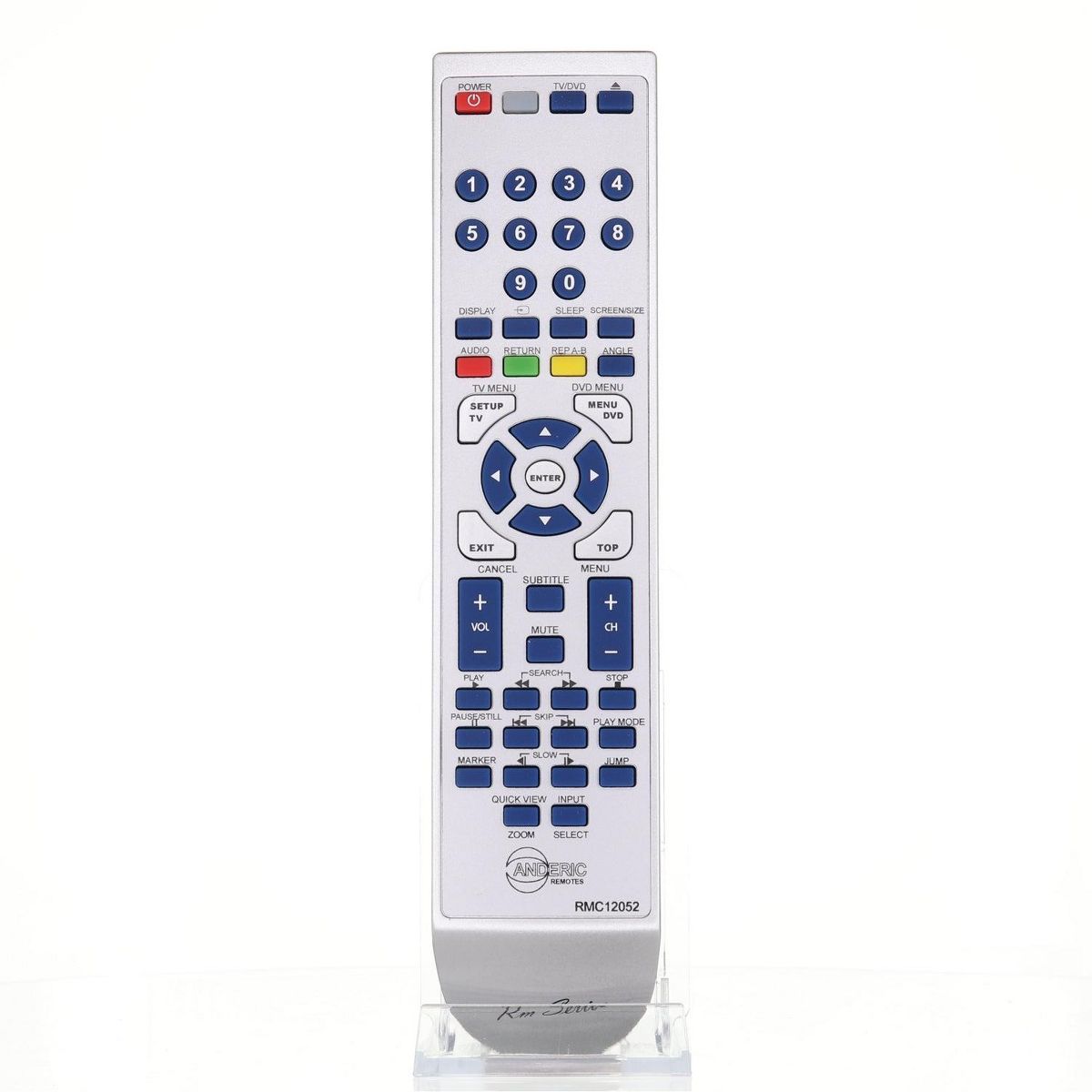 The Anderic RMC12052 remote control is a replacement for many original Sansui and Orion TV/DVD combo remotes. Pre-programmed and ready for use, it operates compatible models right out of the package—no programming needed. This remote supports essential functions such as INPUT, SCREEN SIZE, and standard TV/DVD combo controls. Designed specifically for Sansui and Orion combo units, it will not operate other device types like cable boxes or DVD players. For proper use, simply insert 2 AAA batteries (not included) and point directly at the TV/DVD unit. Replaces remotes including 076R0LJ030, 076R0HE04A, 076R0LJ041