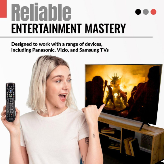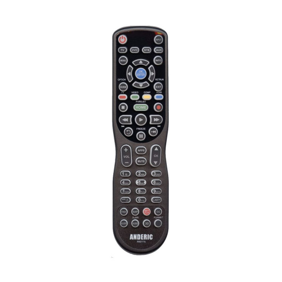 The Anderic RR0777S (model N2QAYB000777S) is a versatile replacement remote control designed for Panasonic TVs and audio/video equipment. Preprogrammed for Panasonic televisions, this remote is ready to use right out of the package with no setup required for compatible models. It features built-in learning capability, a convenient backlight for low-light use, and control for up to four devices, making it a flexible and practical solution for home entertainment setups.