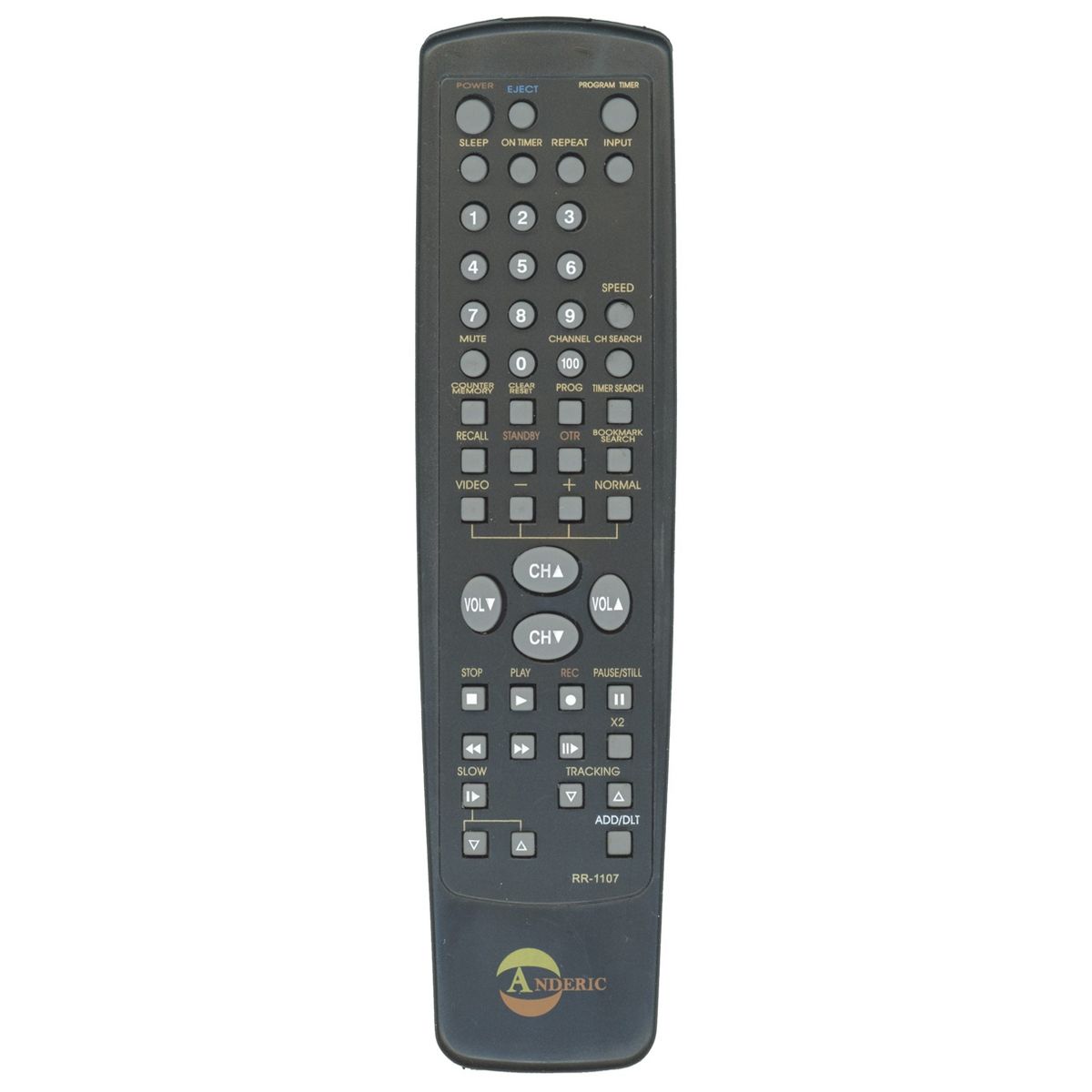 The Anderic RR1107 remote control is a replacement for many original Panasonic and Quasar TV/VCR combo remotes. Designed for ease of use, it comes pre-programmed and ready to operate compatible models straight out of the package—no setup required. This remote is specifically built for Panasonic and Quasar TV/VCR combo players and is not compatible with other device types such as DVD players or cable boxes. Replaces remotes such as: VSQS0973, EUR50328, EUR501120, 076N0GU010, VSQS1226, VSQS1293, VSQS1573, VSQS1564, VSQS1501, VSQS1491, VSQS1483, VSQS1482, VSQS1481, VSQS1444, VSQS1443, VSQS1441, VSQS1440, VSQS1437, VSQS1431, VSQS1415, VSQS1414, N2QAHB000026, LSSQ0384, LSSQ0380, LSSQ0319, LSSQ0299, LSSQ0284, LSSQ0281, LSSQ0279, LSSQ0278, LSSQ0241, LSSQ0203, LSSQ0198, EUR51105, EUR50424, VSQS0964, VSQS1292, VSQS1609, VSQS1608, VSQS1605, VSQS1603, VSQS1602, VSQS1123, VSQS1128, VSQS1127, VSQS1305, VSQS1294, VSQS0874, VSQS0875, VSQS0719, VSQS1411, VSQS0703, VSQS0718, VSQS1108, VSQS1124, VSQS0882, VSQS1403, VSQS1370, VSQS1575, VSQS1574