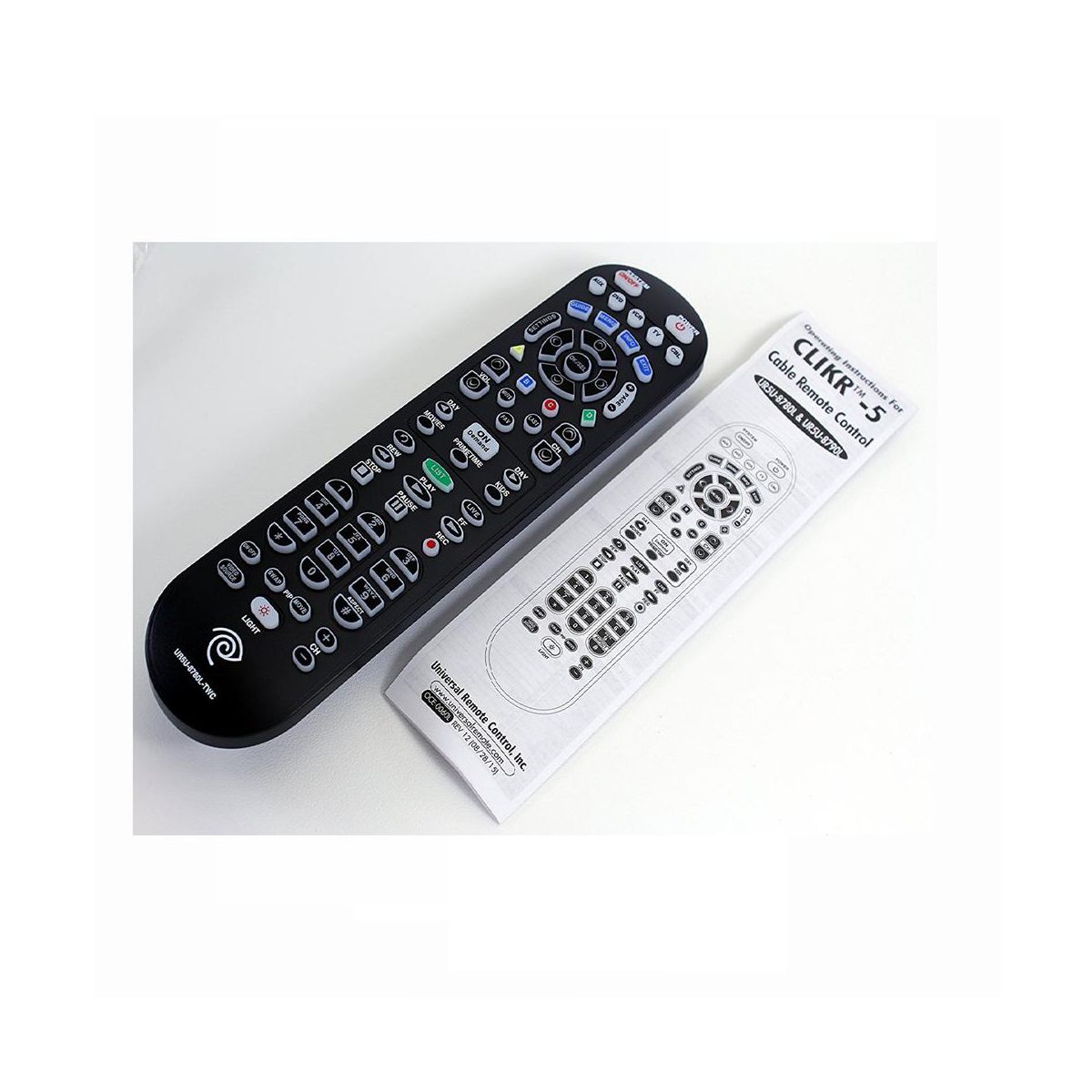 SPECTRUM CLIKR™-5 Cable Remote Control Universal Programmable Remote Control for Spectrum, Brighthouse, and Time Warner Cable Set-top Cable Boxes. The Spectrum CLIKR-5 is designed to offer complete control for all digital, HD and DVR set-top boxes. The UR5U-8780L is factory programmed to operate all Spectrum set-top boxes as well as Scientific Atlanta/Cisco and Samsung set-top boxes. In addition to the set-top box the CLIKR-5 can also control TV’s, VCR’s, DVD players and Auxiliary equipment such as audio receivers and home theater systems. The Spectrum CLIKR-5 features a fully backlit keypad and upgradeability. Features and Benefits * Tru2way / OCAP compliant * Control up to 5 devices * 64-K chip pre-loaded with the largest code library in the industry * Dedicated ON DEMAND button * System Power button for powering on/off all devices with one button * Illuminated mode buttons (AUX, DVD, VCR, TV, CBL) * Full keypad backlighting featuring exclusive ‘night vision’ red illumination * ‘Sure Touch’ cursor navigation pad * The industry’s simplest & quickest device code programming * Quick programming instructions included * Memory Lock retains programmed memory for 10 years even with Batteries removed Specifications Size: 2.875″(W) x 8.5″(L) x 1.125″(D) Weight: 4.1 oz Power Supply: 2 x AA Batteries Included. User Manual Operating Instructions For CLIKR™-5 Cable Remote Control