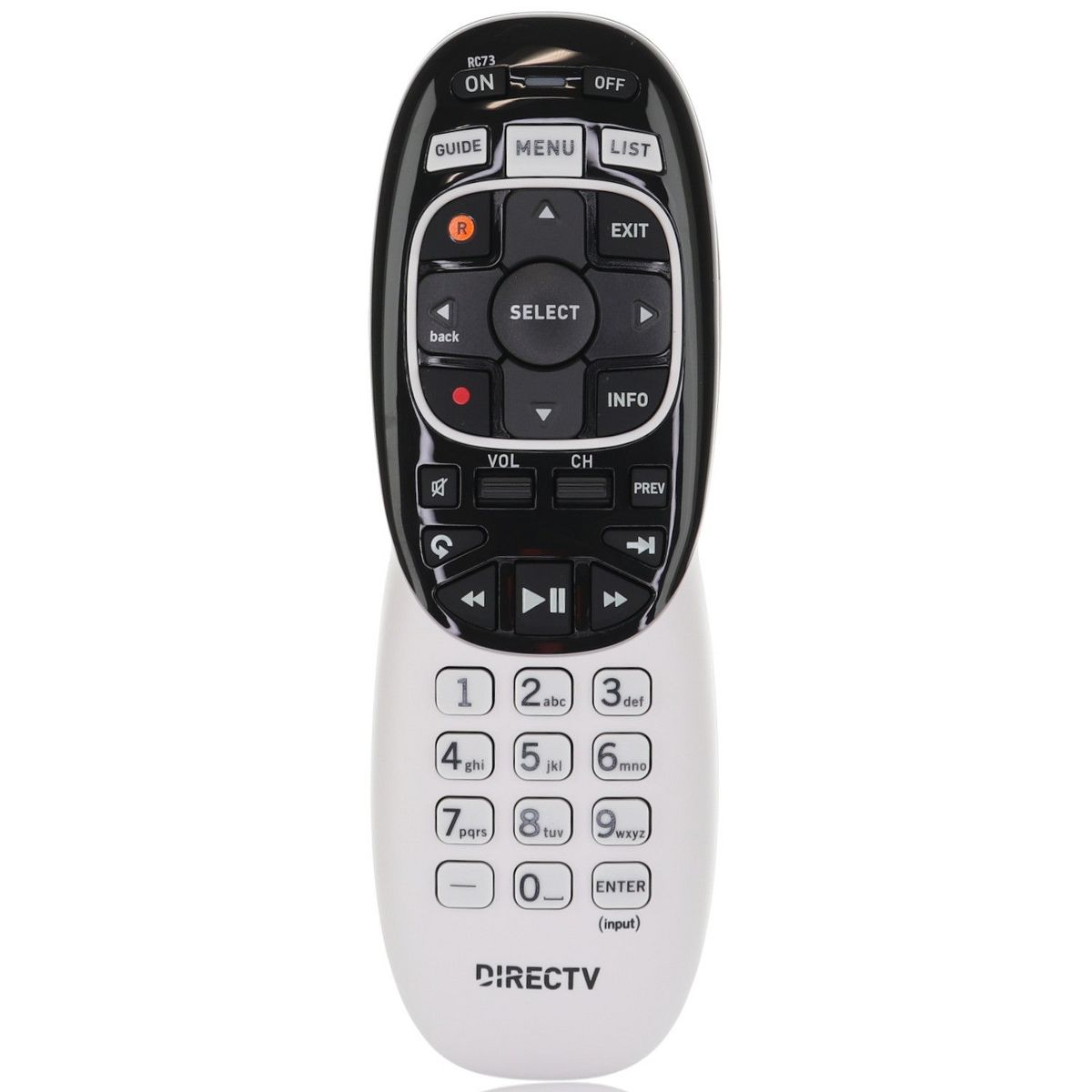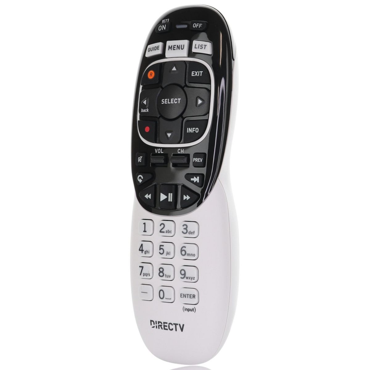 The DirecTV RC73 Genie Remote Control offers reliable RF functionality for operating your DirecTV Genie satellite boxes without line-of-sight. No programming is required when paired with compatible models, and it includes instructions for quick setup. This remote replaces the RC71 and RC72 models and is originally supplied with a wide range of DirecTV receivers.