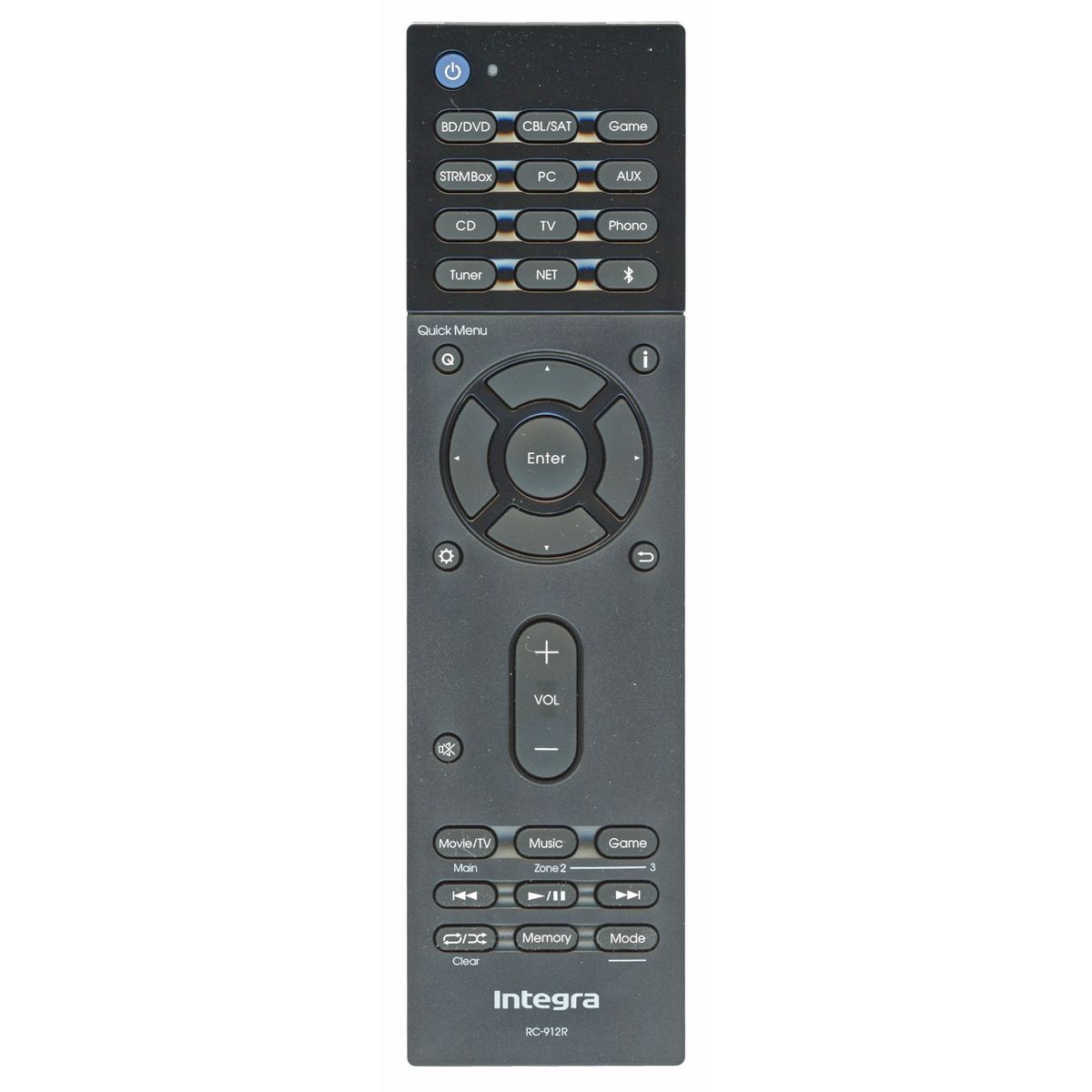Take command of your Integra receiver with the RC912R remote. Comprehensive controls for audio input, volume, and surround sound settings deliver complete home theater mastery. Responsive buttons and logical layout make adjustments intuitive and quick. Essential for serious audio enthusiasts. Originally supplied with models: DRX 3.1, DRX31 NOTE: The remote you may receive may have different shortcuts, or it may be substituted with another fully compatible verified by Integra OEM model.