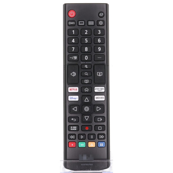 The LG AKB76037603 remote control is designed for select LG 4K Smart UHD TV models, providing reliable IR operation and quick access to popular streaming services. It includes dedicated shortcut buttons for Netflix, Prime Video, Disney+, and Movies (shortcuts may vary). No programming is required—just insert the batteries and it’s ready to use.