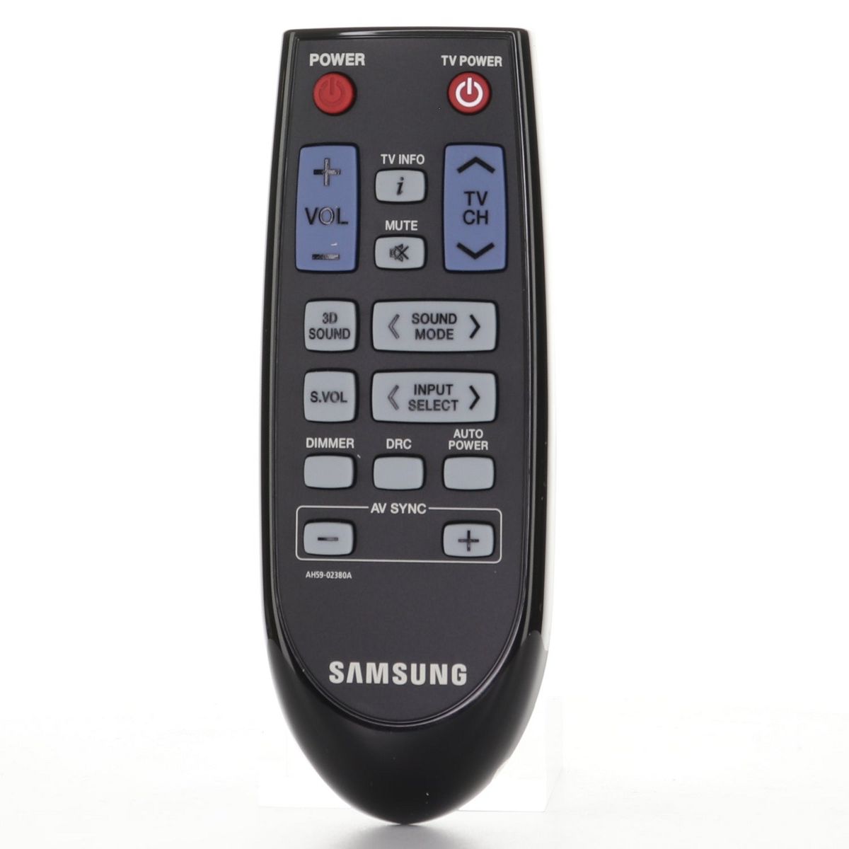 The Samsung AH59-02380A remote control is designed specifically for 2D Virtual Surround Sound Bars, offering precise control and seamless operation. Engineered to enhance your user experience, it provides intuitive access to key sound settings, allowing you to optimize audio performance effortlessly. Compatible with select Samsung sound bar models, this remote delivers reliable responsiveness and durability, ensuring convenient management of your home entertainment system.