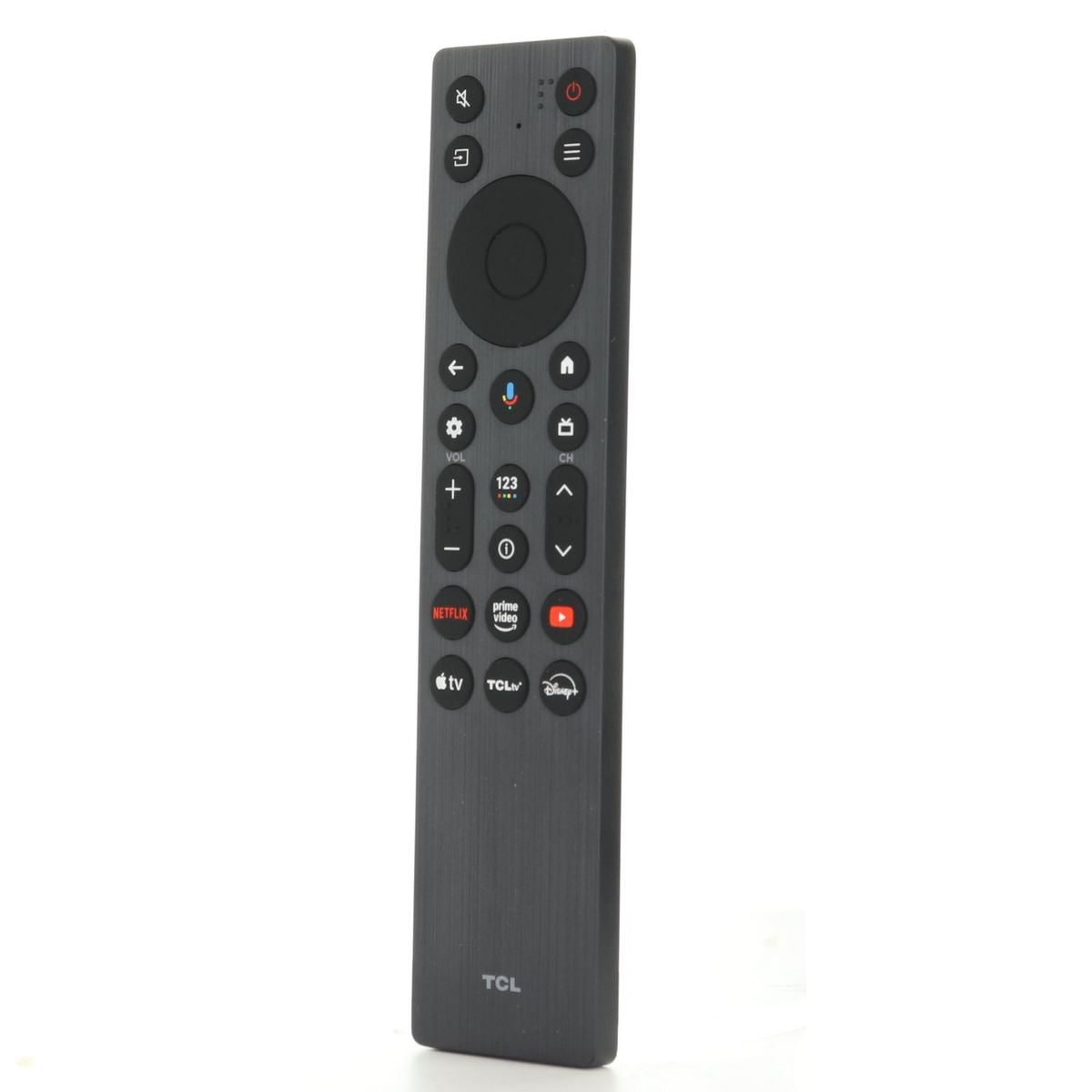 The RC923A / FMB1 remote control is designed for TCL QLED and QLED Mini Google TVs. It includes built-in voice control and dedicated streaming buttons for quick access to Netflix, Prime Video, YouTube, Apple TV+, TCLtv, and Disney+. No programming required for compatible TCL Google TV models.