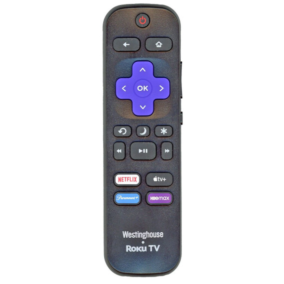 The RC-ALIR 2024 Roku TV Remote Control is a pre-programmed IR remote made for Westinghouse Roku Smart TVs. It includes dedicated app shortcut buttons for quick access to Netflix, Apple TV+, Paramount+, and HBO Max (Shortcuts may vary). This remote will not work with Roku streaming sticks or boxes and does not include voice or RF functionality.