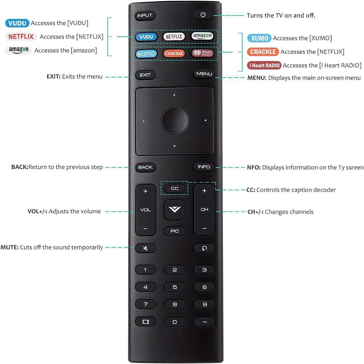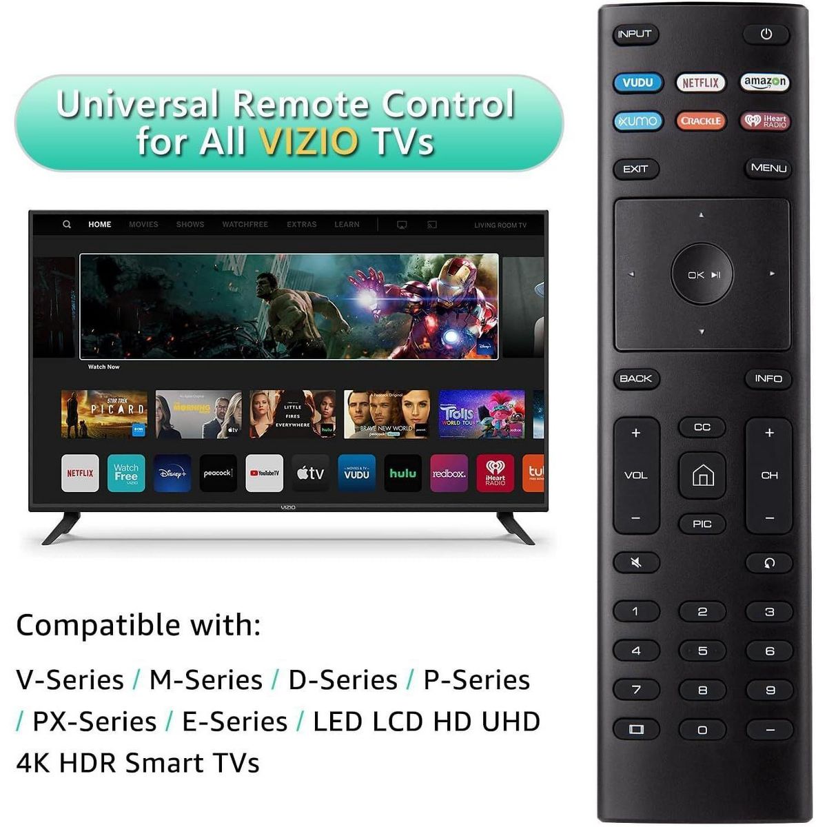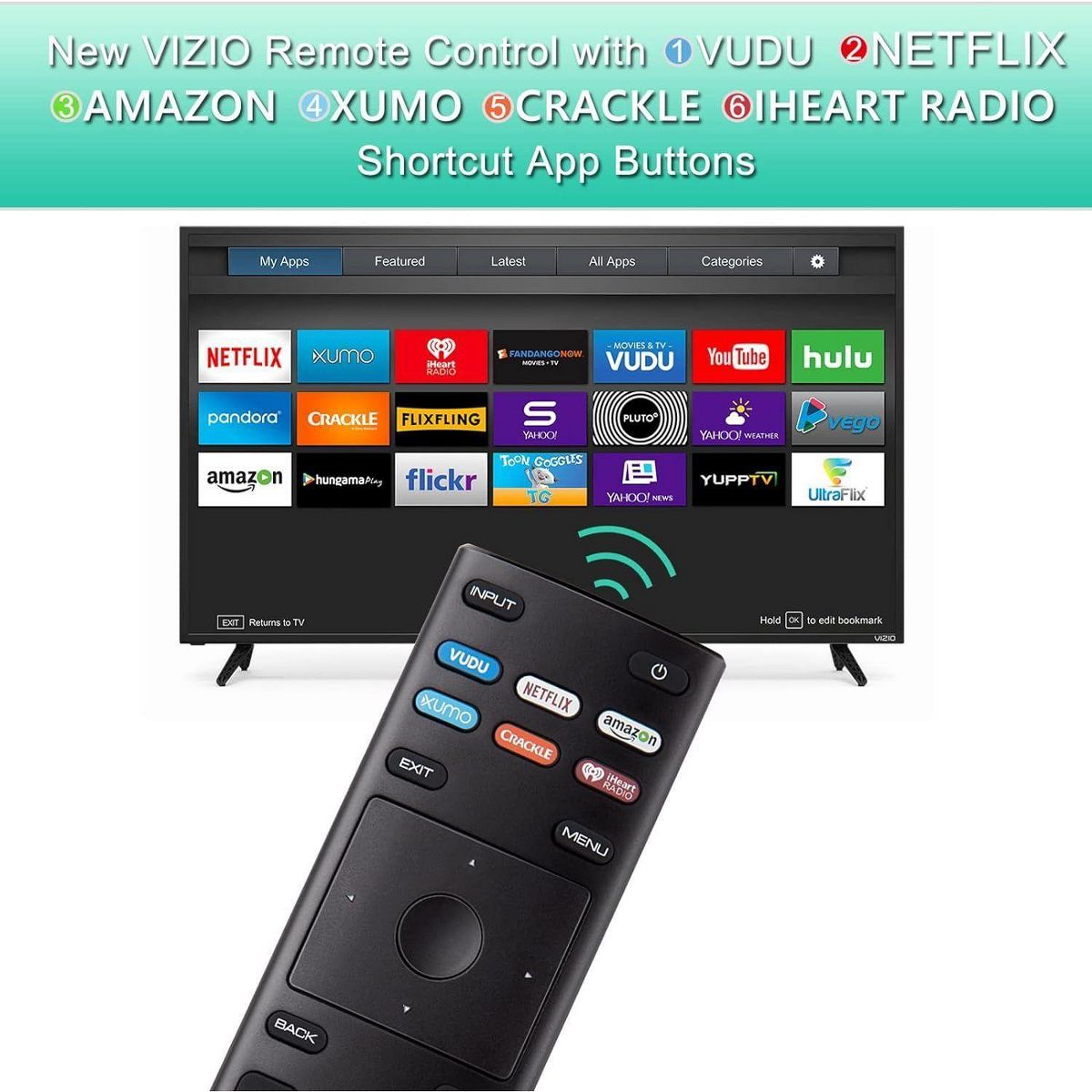 New VIZIO Remote Control with VUDU NETFLIX AMAZON XUMO CRACKLE IHEART RADIO Shortcut App Buttons.