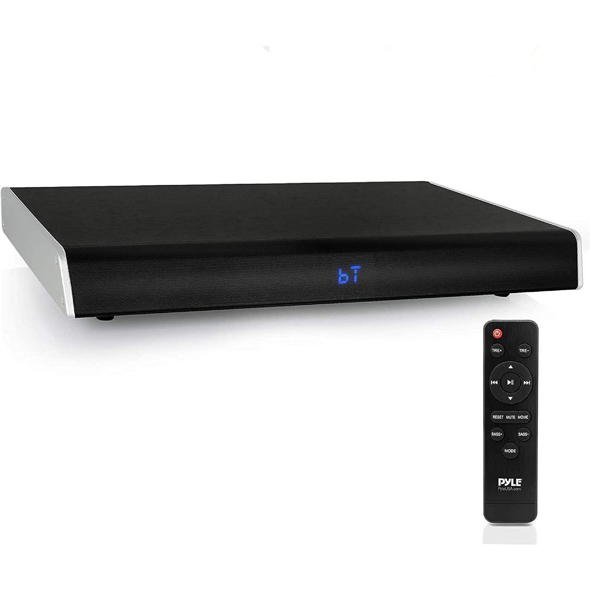 The Pyle Bluetooth TV Sound Base Speaker System enhances your home theater experience. This powerful yet compact sound base is designed to sit under your television -- and it's super easy-to-setup & easy-to-use! Built-in Bluetooth allows you to wirelessly stream audio from all of your favorite devices (like Smartphones, Tablets, Laptops, Computers, etc.). It also connects to your HDTV thanks to the rear panel HDMI connectors. The sound base features exceptional stereo sound reproduction technologies that effectively recreate the entire audio spectrum in a compact, form-fitting space. Full range audio is created thanks to the high-powered 5.0'' ported enclosure subwoofer and dual 1.5'' speakers, all made for adding rich sounds to your next movie night! Let Pyle improve your audio & multimedia experience by adding clean and simple style -- with next-generation sound technology. Upgrade your home theater entertainment system with the Pyle Bluetooth TV Sound Base Speaker System.