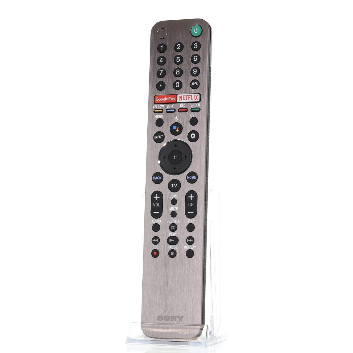 The RMF-TX600U remote control is designed for select Sony Smart TVs and supports voice control along with shortcut access to Google Play and Netflix. Built with a premium metal front and no backlight, it provides sleek, reliable functionality for compatible models.