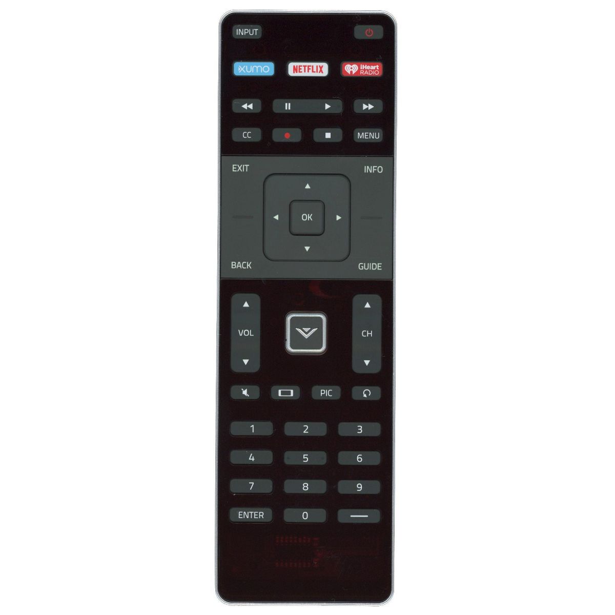 The XRT500 with XUMO key is a full-featured remote designed for seamless control of your Vizio television and compatible streaming services. This remote combines traditional TV controls with dedicated XUMO access, allowing you to navigate entertainment quickly without switching devices.