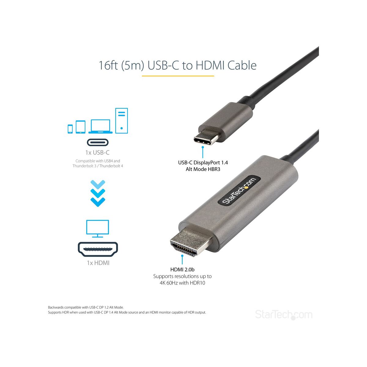 StarTech.com 16ft USB C to HDMI Cable Adapter 4K 60Hz HDR10 - Ultra HD HDMI 2.0b