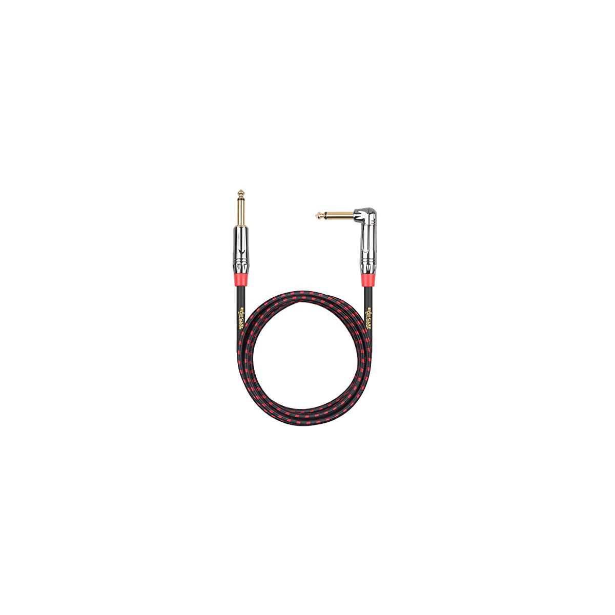 Clef Audio Labs 6.35mm TS to 6.35mm TS Straight to Angled, Black Chrome Zinc Alloy Shell/Red Braided - 6FT -1PK
