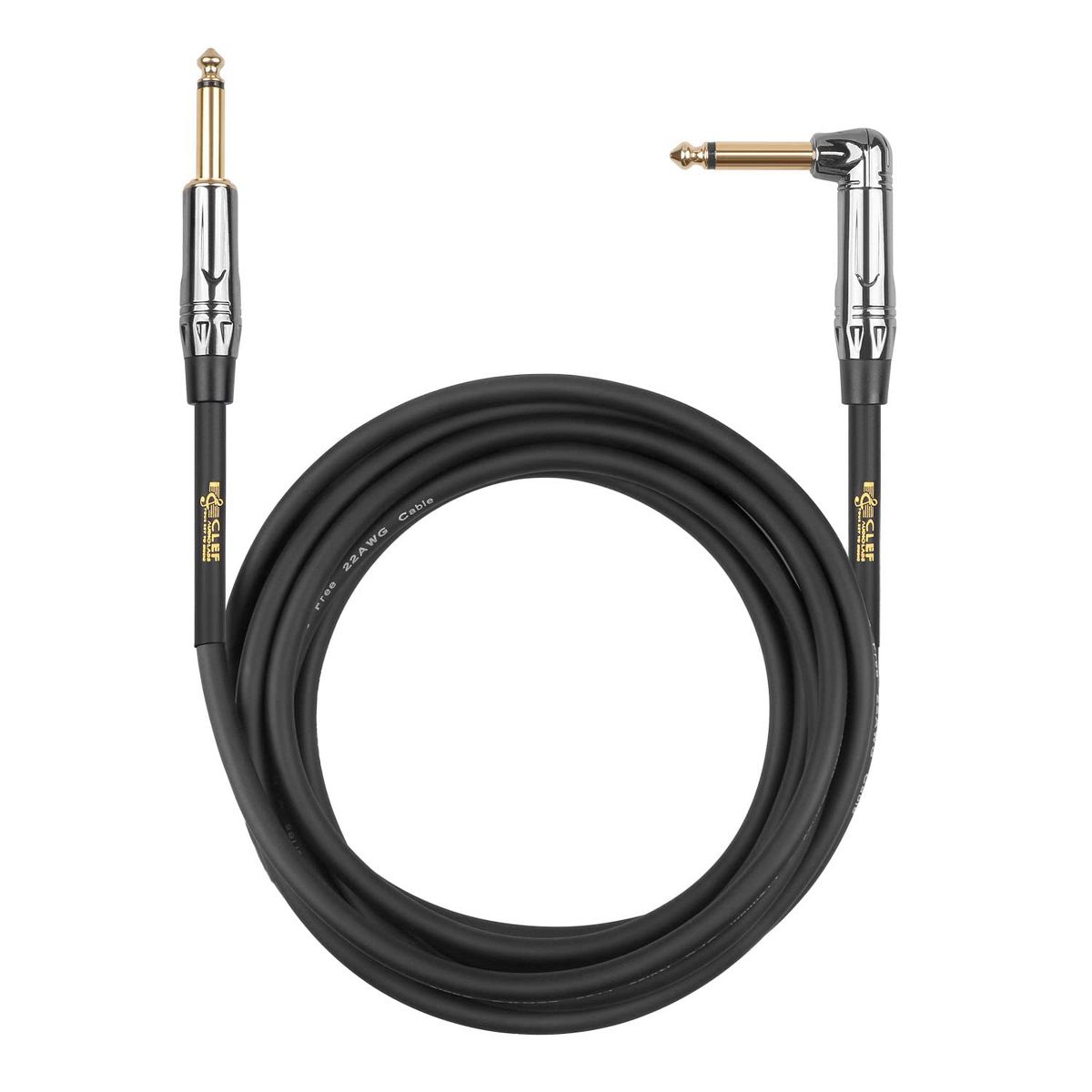 Clef Audio Labs Instrument Guitar Cable, 10ft - 1/4 inch TS Straight to Right Angle Electric bass Guitar AMP Cord PVC Jacket