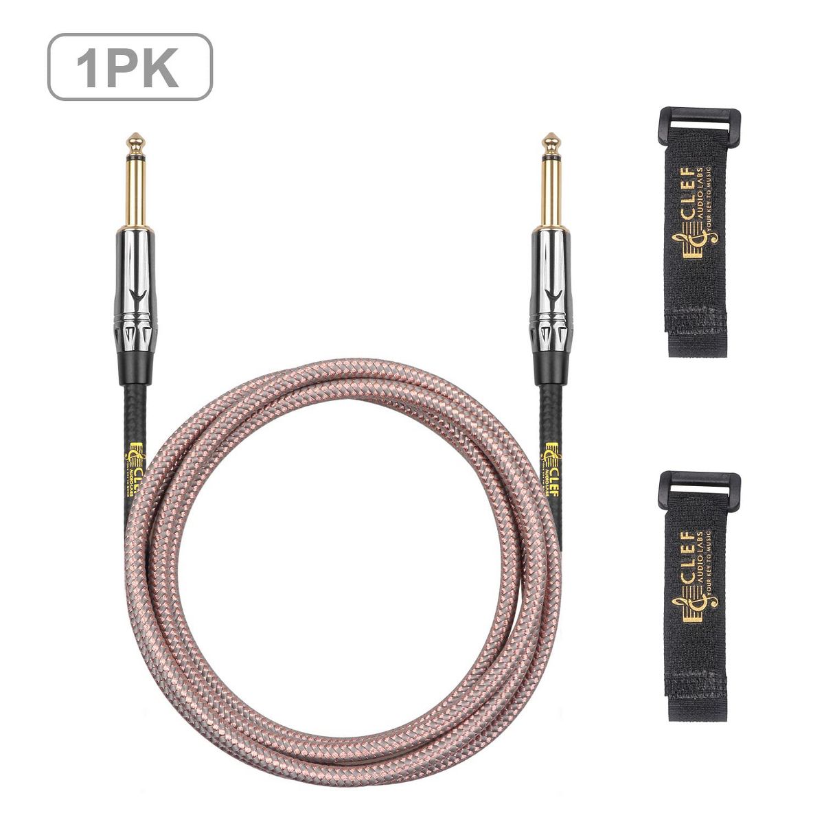 ???? Elevate Your Sound with the Clef Audio Labs 10ft Instrument Guitar Cable ???? At Clef Audio Labs, we believe that your music deserves the best. That's why we've designed the 10ft Instrument Guitar Cable with high-quality materials and superior craftsmanship to deliver exceptional sound quality and a reliable performance every time. With a durable copper and gray braided jacket, gold-plated straight ends, and chrome zinc alloy shell, this cable is built to last and can withstand even the toughest conditions. And with OFC, shielded, and shrink-wrapped solder points, you can rest assured that your sound will be clear and free of any noise or interference. At a length of 10ft, this cable provides plenty of room to move around while playing or recording, without any compromise on sound quality. And with its versatility, you can use it with a wide range of instruments and musical equipment, including your guitar, amp, and effects pedals. But what sets the Clef Audio Labs 10ft Instrument Guitar Cable apart from the rest is the attention to detail and commitment to quality that goes into every cable. We believe that your music deserves the best, and we're confident that you'll love using our cable as much as we do. So why settle for a subpar cable when you can elevate your sound with the Clef Audio Labs 10ft Instrument Guitar Cable? Order now and experience the difference for yourself.