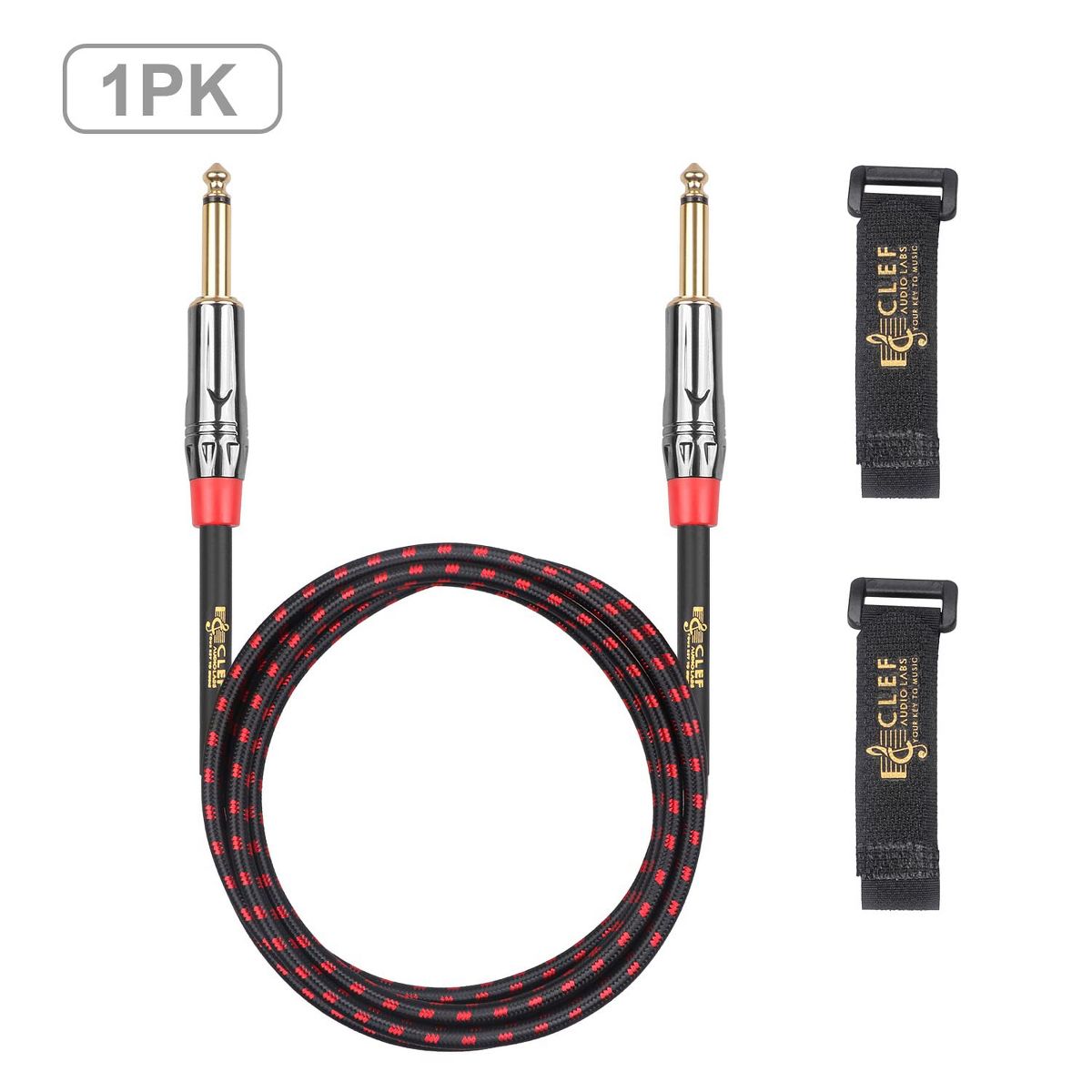 Clef Audio Labs Instrument Guitar Cable, 15ft - 1/4 inch TS Straight to Straight Electric bass Guitar AMP Cord Red Braided Jacket