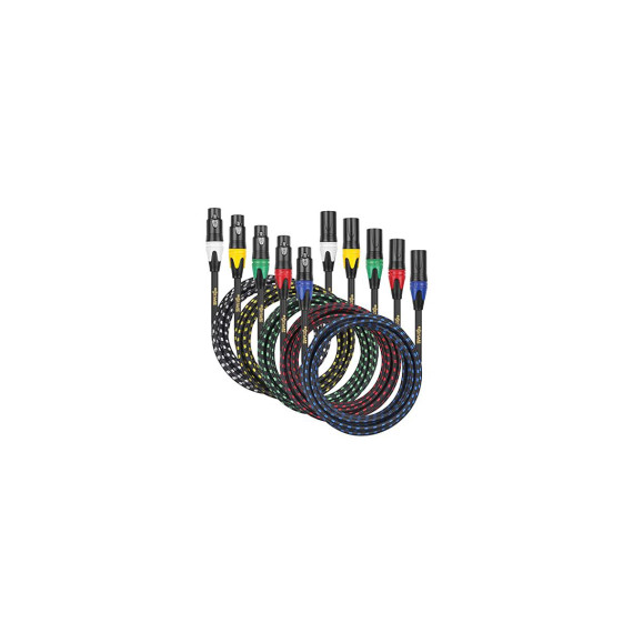 Clef Audio Labs XLR Male to XLR Female, Black Zinc Alloy Shell/5 Color Braided - 10FT - 5PK