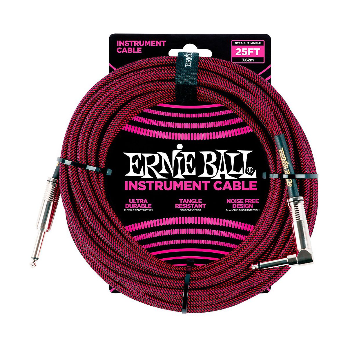 Ernie Ball instrument cables feature a high-quality design made with superior components that are built to last. Dual-conductors deliver reliably clear tone with crisp highs, tight mids, and rich harmonics. Multiple shielding materials preserve the signal with low handling noise, and the braided jacket exterior provides a tangle-resistant experience.