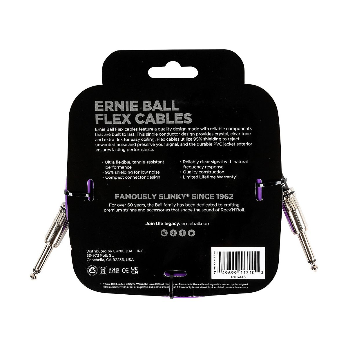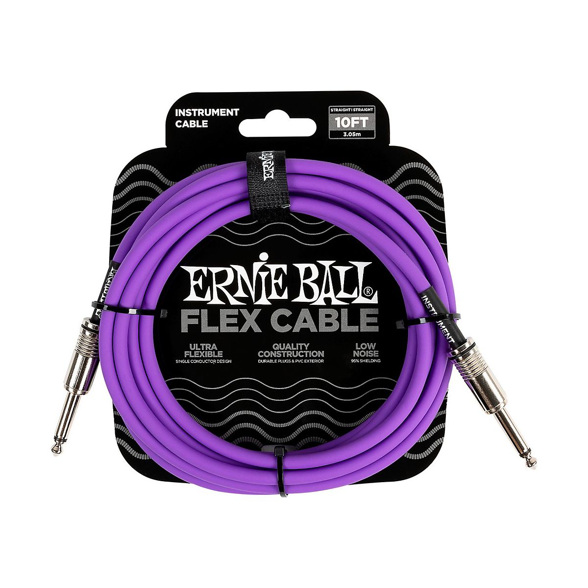 Ernie Ball Flex straight to straight instrument cables feature a quality design made with reliable components that are built to last. This single conductor design provides crystal-clear tone and extra flex for easy coiling. Flex cables utilize 95% shielding to reject unwanted noise and preserve signal, and the durable PVC jacket exterior ensures lasting performance.