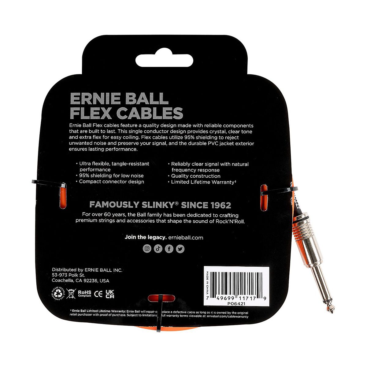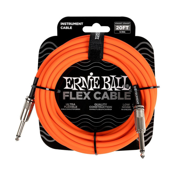 Ernie Ball Flex straight to straight instrument cables feature a quality design made with reliable components that are built to last. This single conductor design provides crystal-clear tone and extra flex for easy coiling. Flex cables utilize 95% shielding to reject unwanted noise and preserve signal, and the durable PVC jacket exterior ensures lasting performance.
