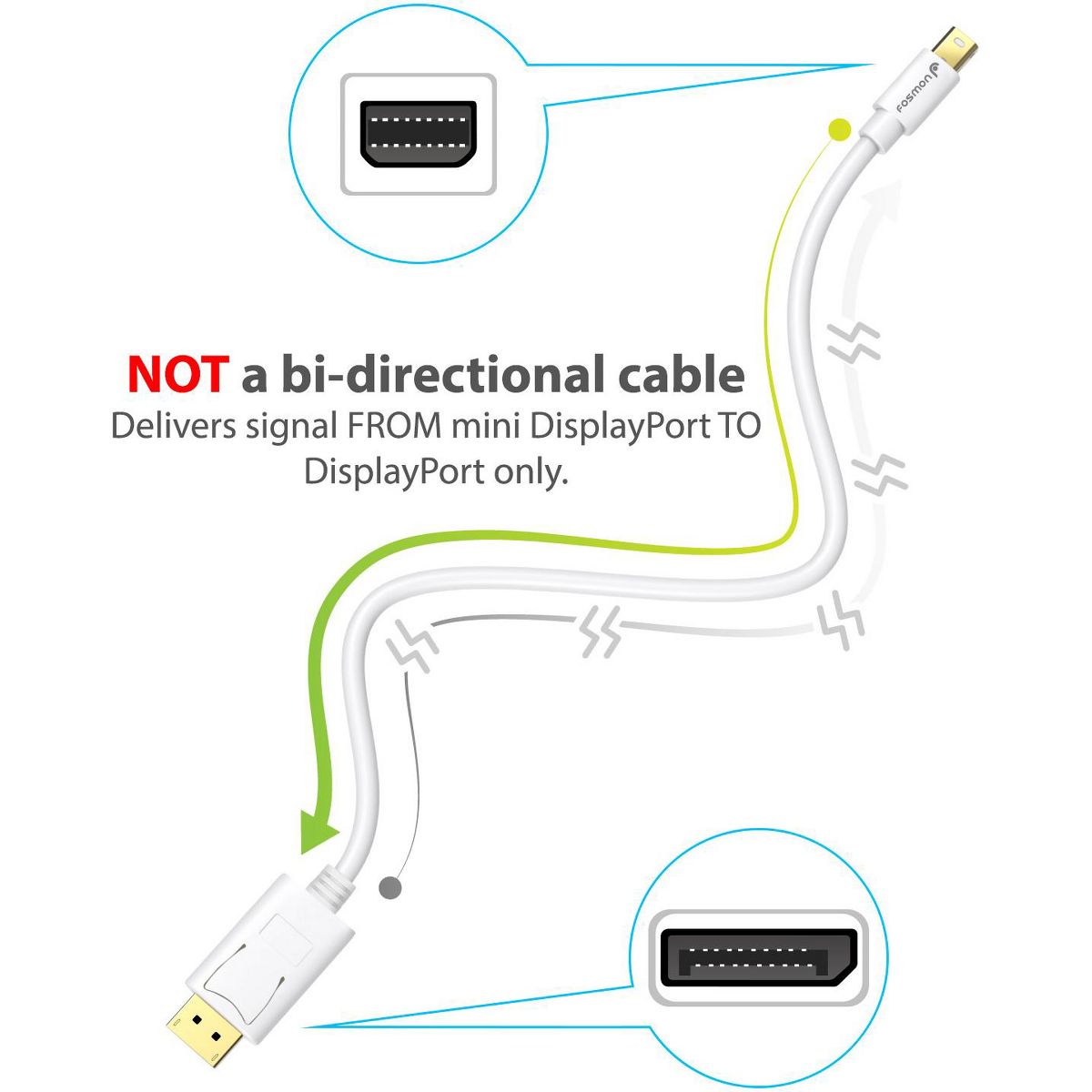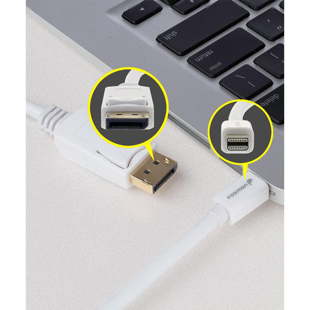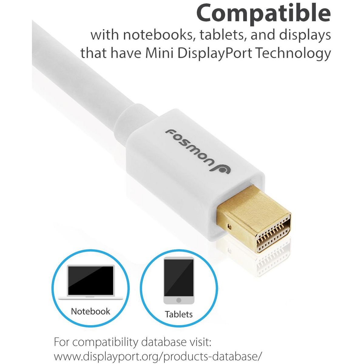 Fosmon's Mini DisplayPort Cable makes a great companion for your PC, Mac, or tablet that's equipped with Mini DisplayPort. This cable allows you to connect your device directly to an external display such as a high definition monitor that accepts DisplayPort connections.
