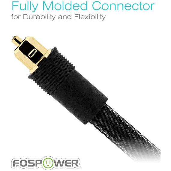 FosPower 24K Gold-Plated Optical Digital Audio Cable - 15FT, Zero RFI & EMI Interference S/PDIF Toslink Cable with Ultra Durable Nylon Braided Jacket