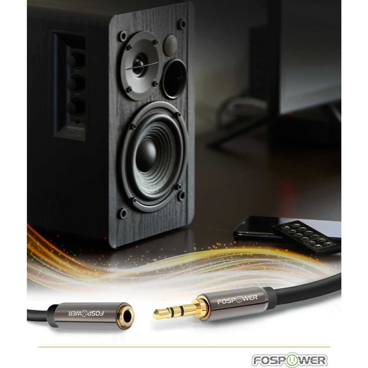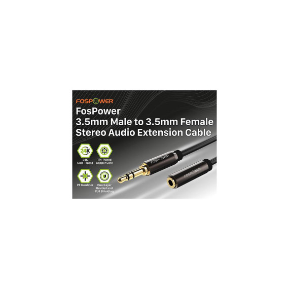 FosPower premium 3.5mm male to 3.5mm female auxiliary stereo audio extension cable allows you to connect your iPhone, iPod, audio streaming device (e.g. ChromeCast Audio, Bluetooth audio receiver), MP3 player, CD player, smartphone, tablet or any audio device with a 3.5mm headphone jack to your car, office or home audio system.